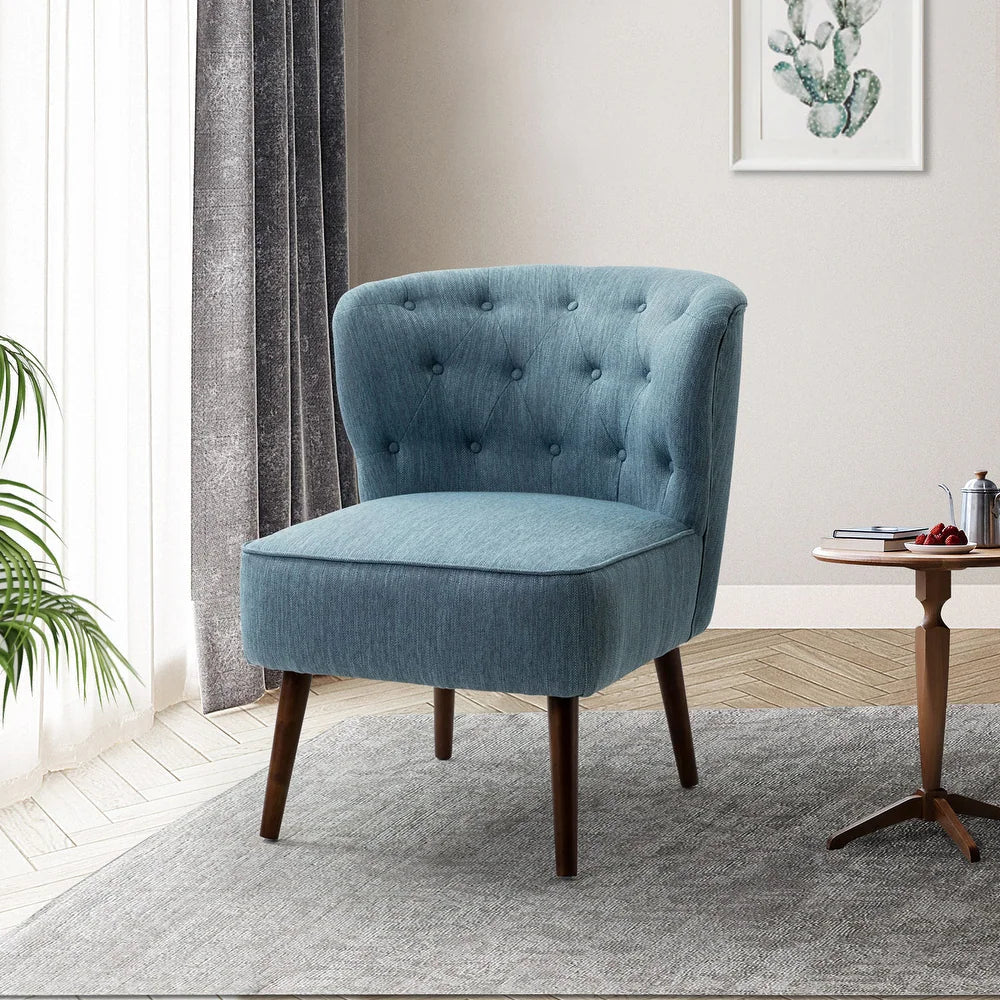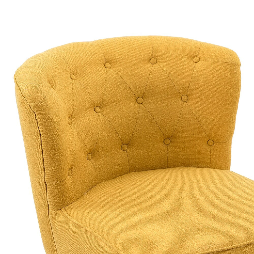 Aimed to be a shining focal point wherever it settled, you can rely entirely on this charming accent side chair. With painstakingly designed details, it's gonna wow your home seating arrangement with contemporary aesthetics. With comfortable foam-filled and textured fabric wrapped, it not only serves as an item of practical furniture but also an eye-catching decoration piece to complete your seating arrangement. Make a statement of modern yet classic aesthetics and button tufting details are the best proof, showcasing your unusual charm of personality. A subtle wingback design and streamlined silhouette define this statement-making piece, delivering standout characters while still blending into your surrounding decor effortlessly. The best piece to show your noble taste, this accent chair is ready for many years of enjoyment in your home.