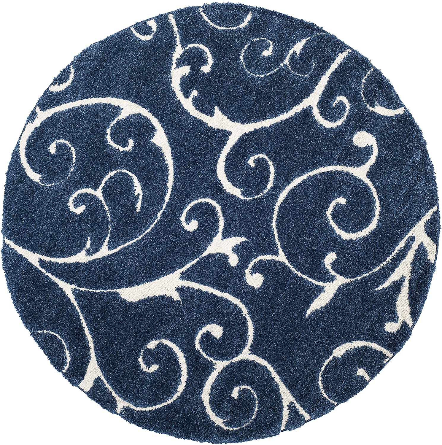 Premium Swirl Thick Plush Dark Blue/Cream Area Shag Rug