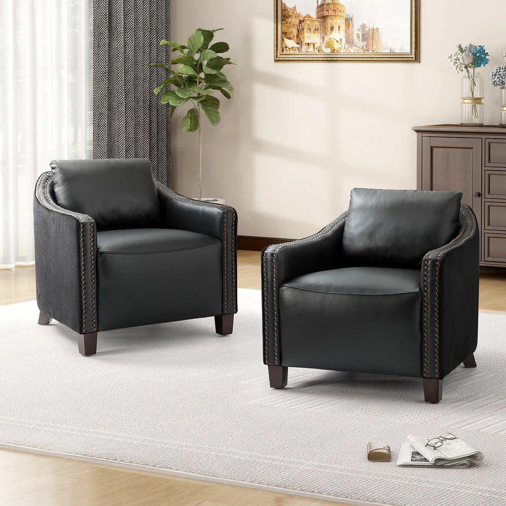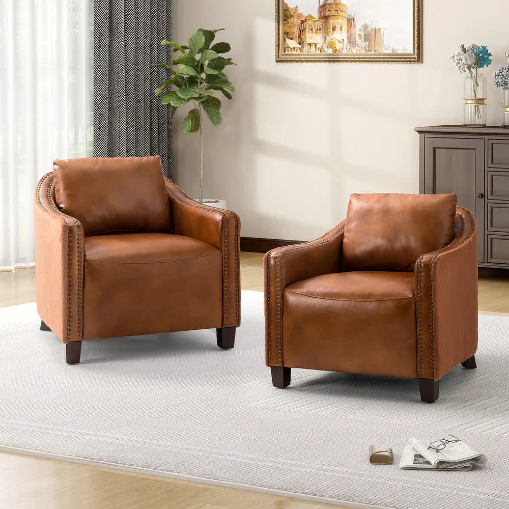 Retro industrial genuine leather barrel chair with nailhead Set of 2