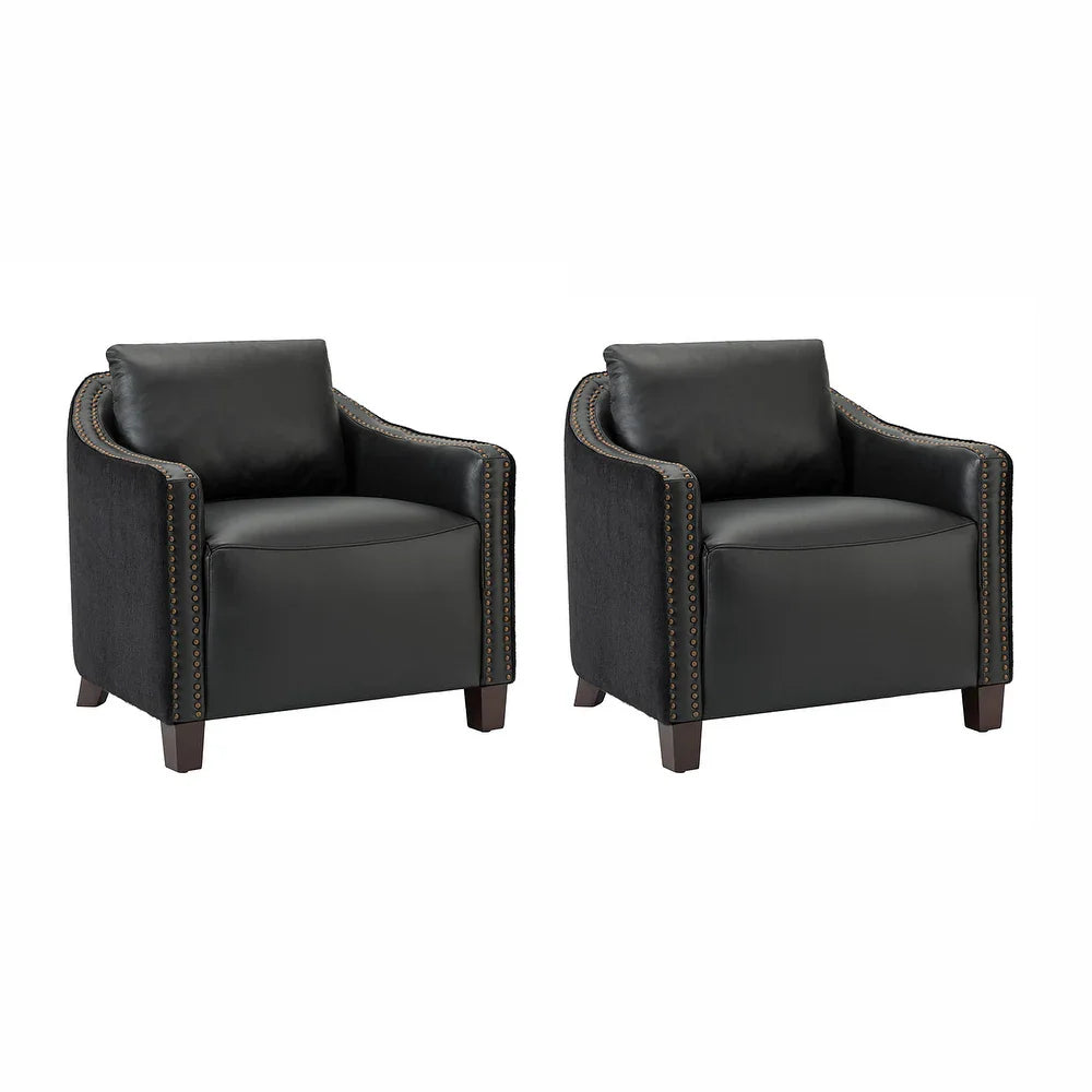 - REFIED TOP GRAIN LEATHER: With elegant nailhead trim, this contact surface of chair is made of genuine leather, while the outside is covered with a soft velvet wrap, combining leather and velvet fabric subtly. It not only provides variety and layering in touch, but also creates a unique aesthetic feeling visually.The leather upholstery is easy to clean and maintain, ensuring hassle-free ownership.