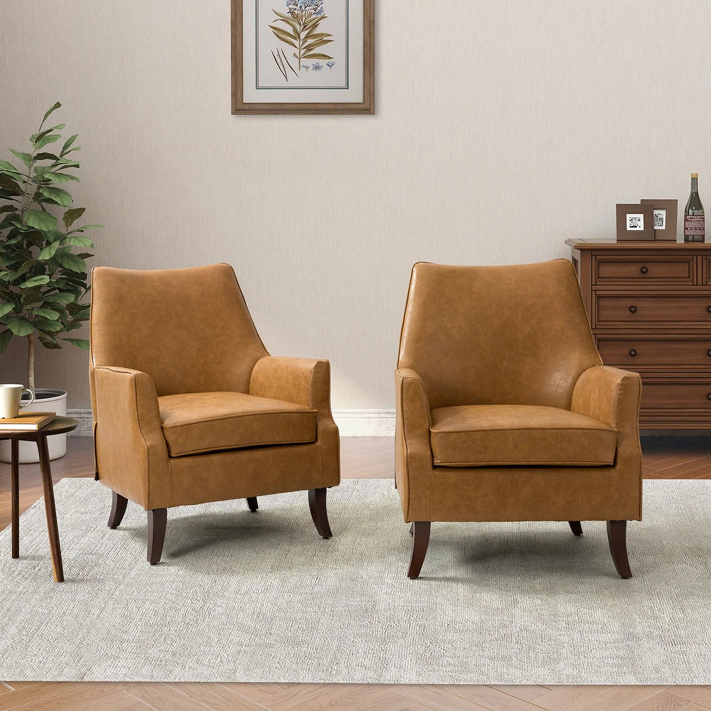 Rhesus Wooden Upholstery Armchair with Solid Wood Legs set of 2
