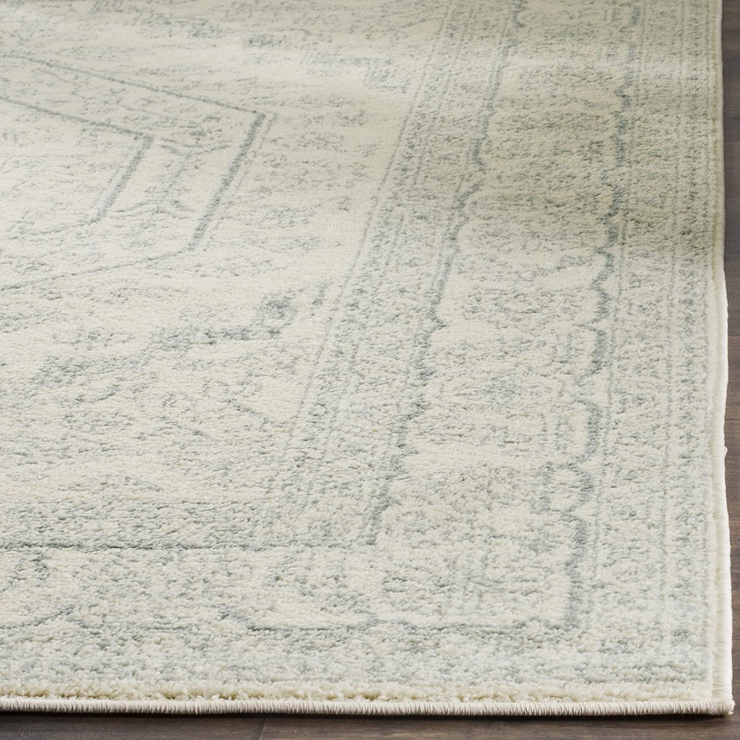 Offering a power-loomed construction, this ivory and slate grey rug can withstand high-traffic areas of the home while maintaining a virtually non-shedding pile. Its unique Oriental pattern with a focal diamond medallion looks lovely in any transitionally styled décor. With a low profile, this rug fits seamlessly beneath furniture.