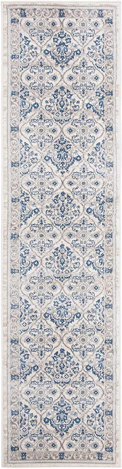 Damask Trellis Soft Area Rug, Light Grey / Blue