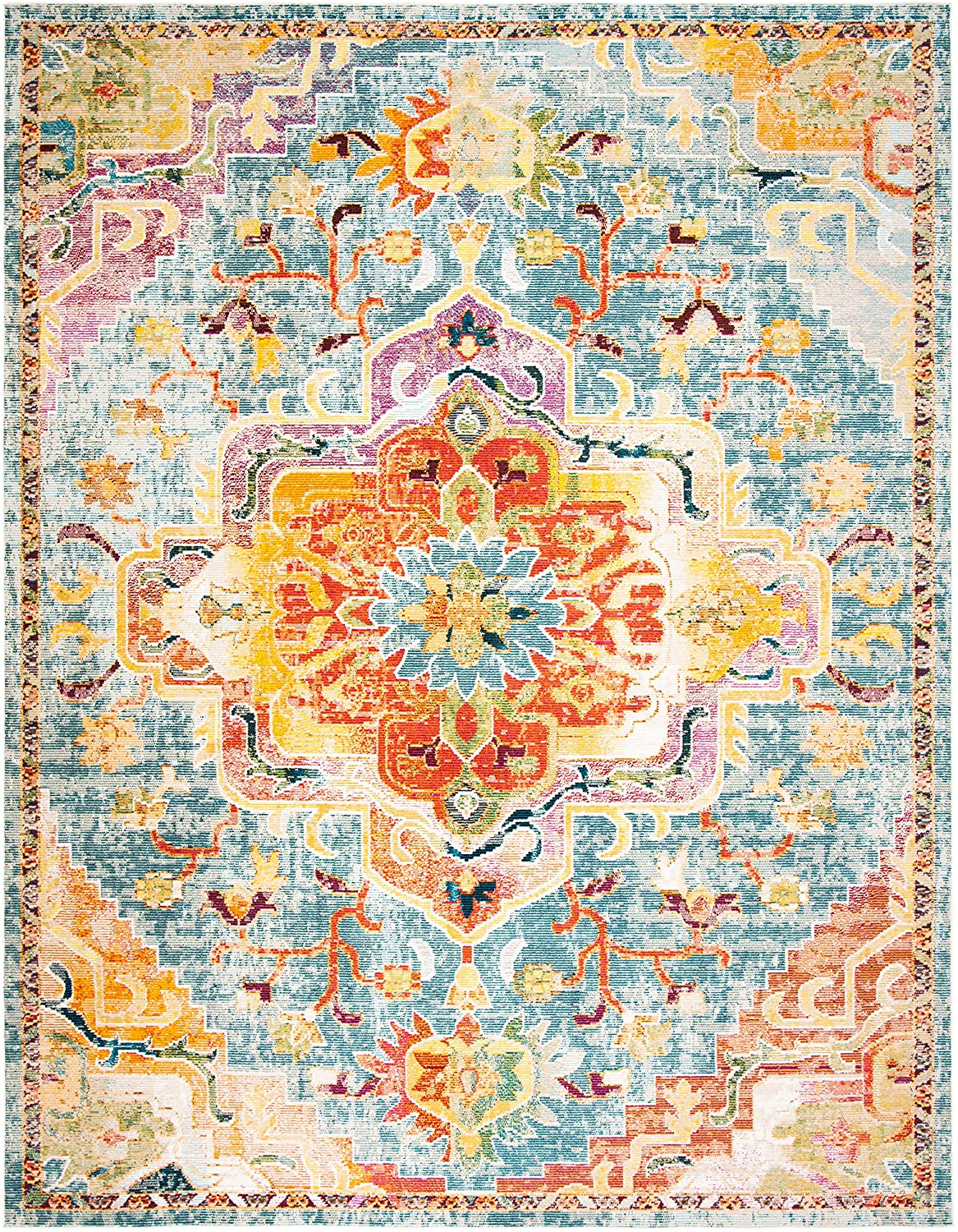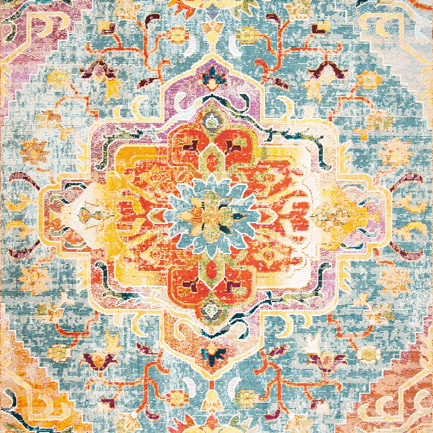 Boho Chic Oriental Medallion Distressed Area Rug, Orange Teal