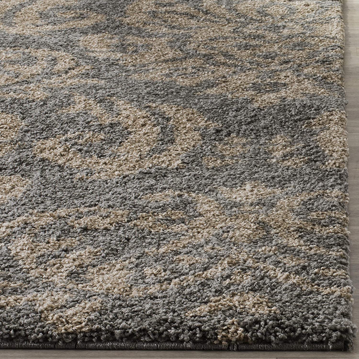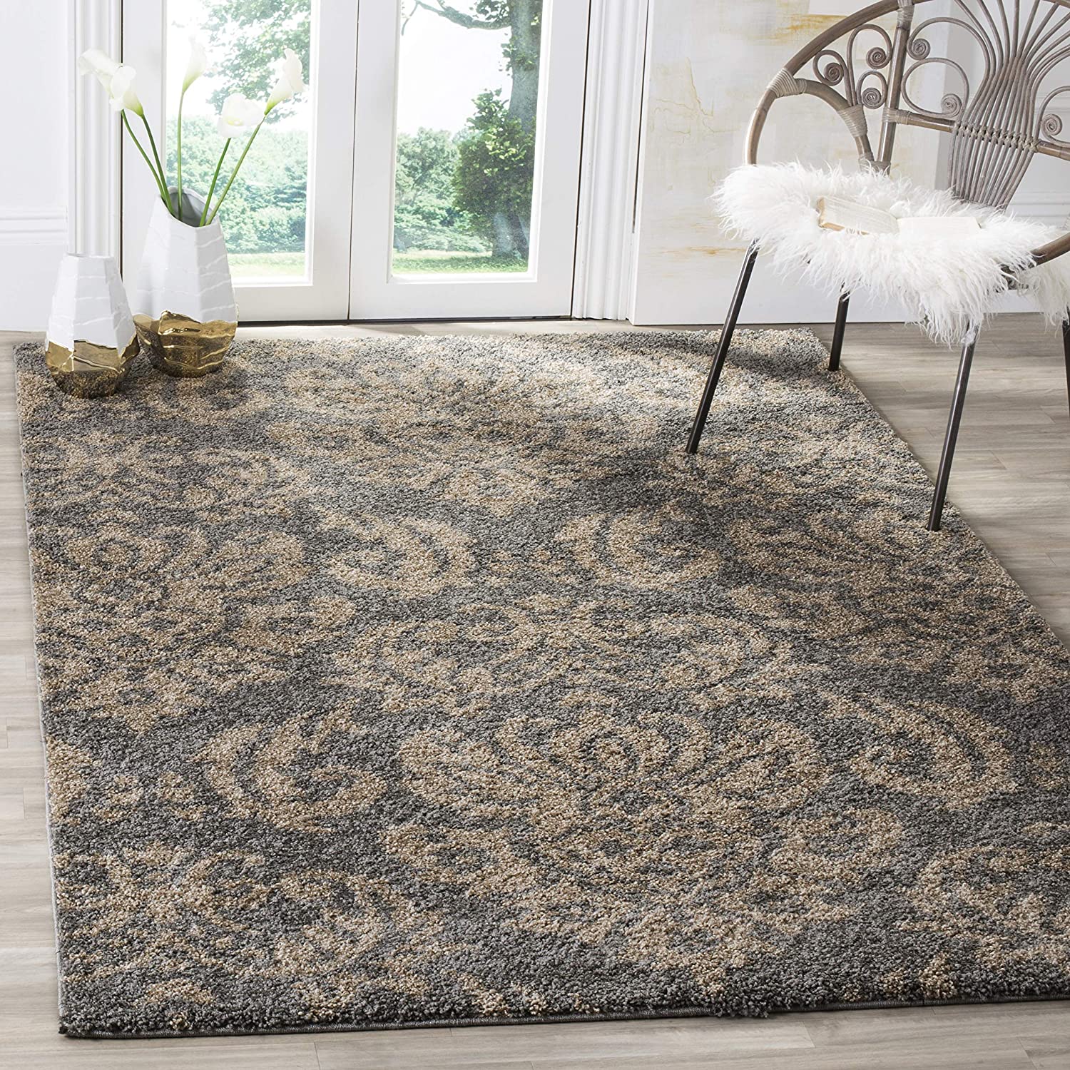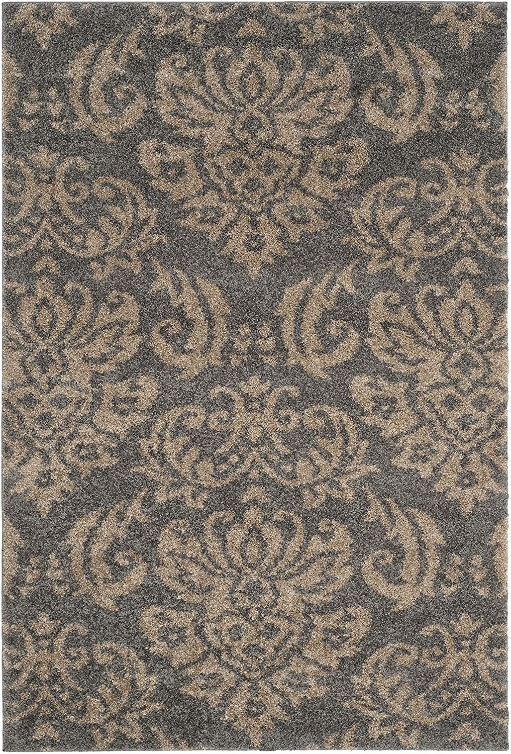 Damask Plush 1.2-inch Thick Shag Area Rug, Grey / Beige