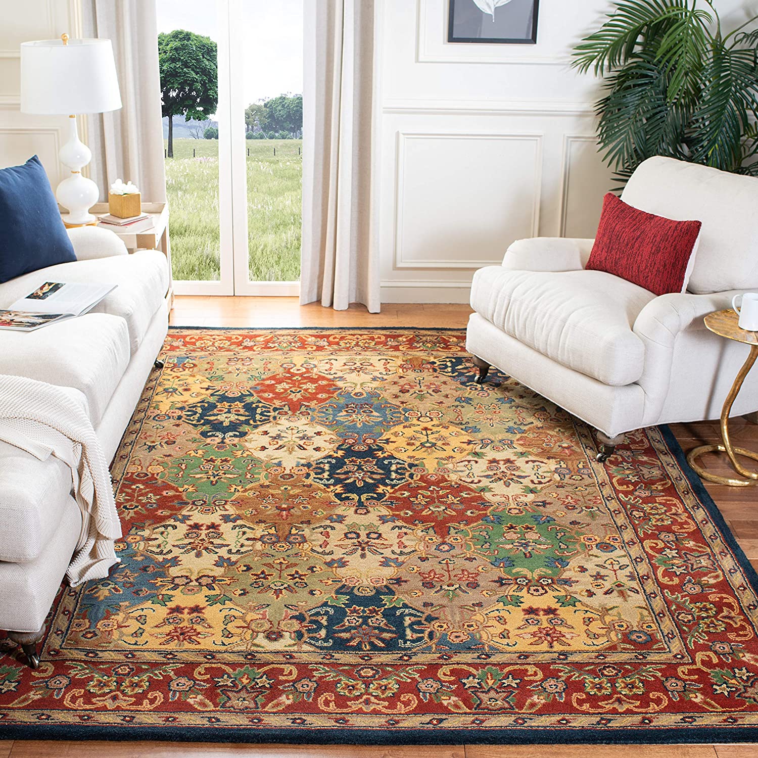 Bring warmth to your hardwood or tile floors, and add a touch of vintage-style to your dining room or living room with this handmade wool rug from Safavieh. This collection merges classical old-world design with modern hand-tufting techniques. The rug is imbued with a variety of rich colors and is soft and lush, making it the ultimate multidimensional addition to your home. This Heritage rug displays some of the finest Persian and European exemplary designs reinterpreted for today’s trends.