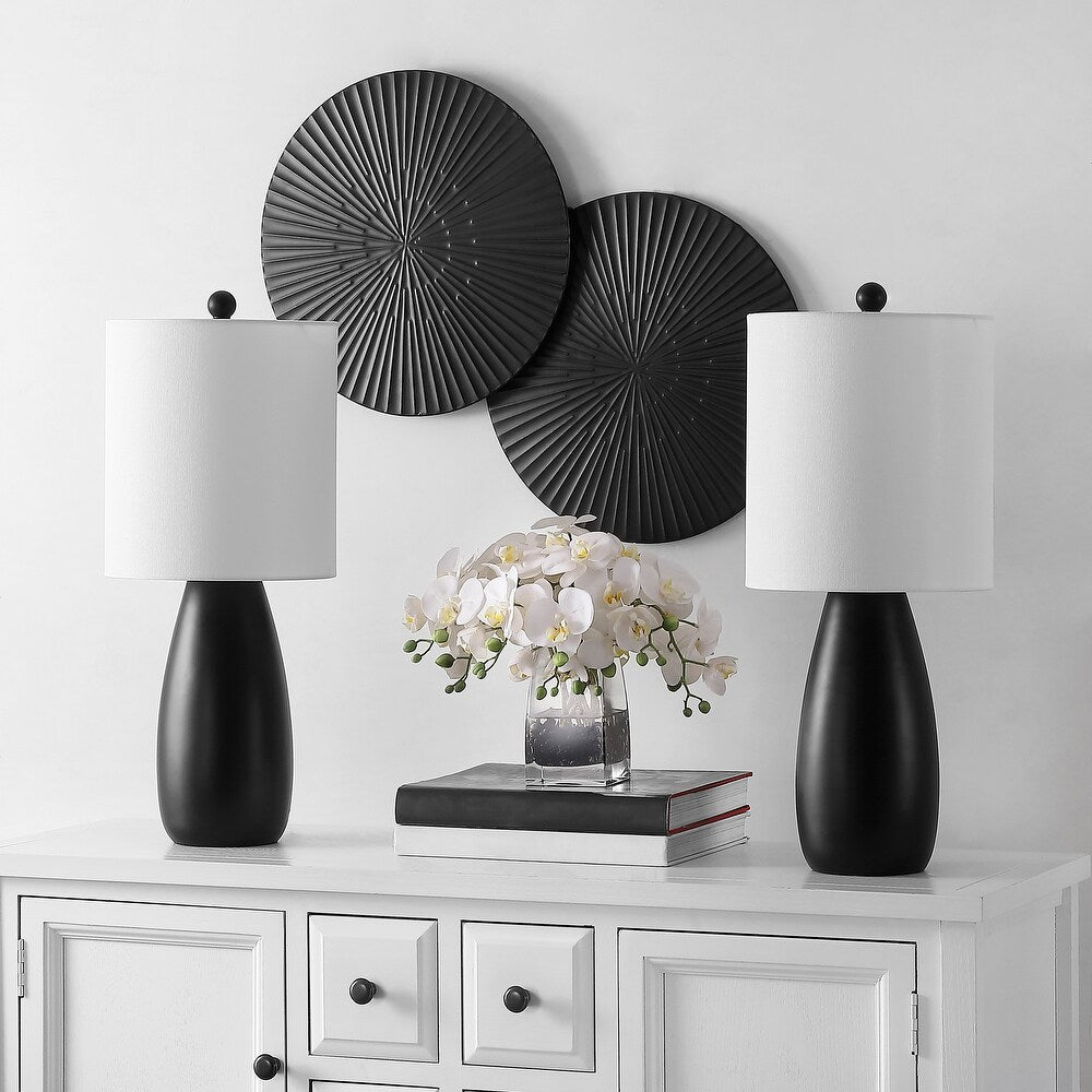 Understated and modern, this Arlia Table Lamp is ideal for today's sleek interiors. Arlia's oversized drum shade pairs beautifully with its conic black silhouette, making for the perfecting finishing touch in any room. Sold in sets of two.