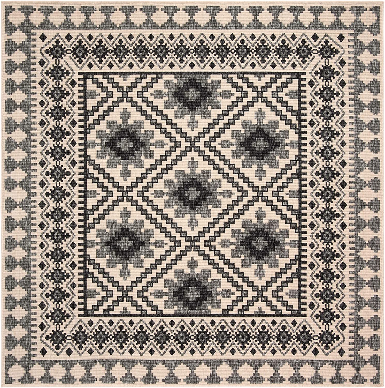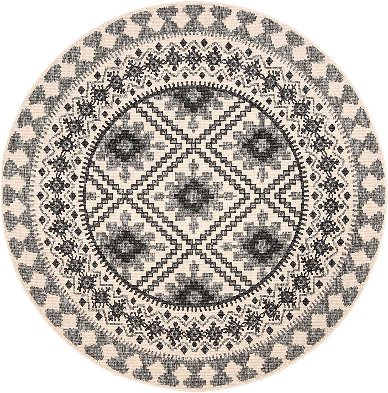 Boho Indoor/ Outdoor Patio Backyard Area Rug, Ivory / Slate