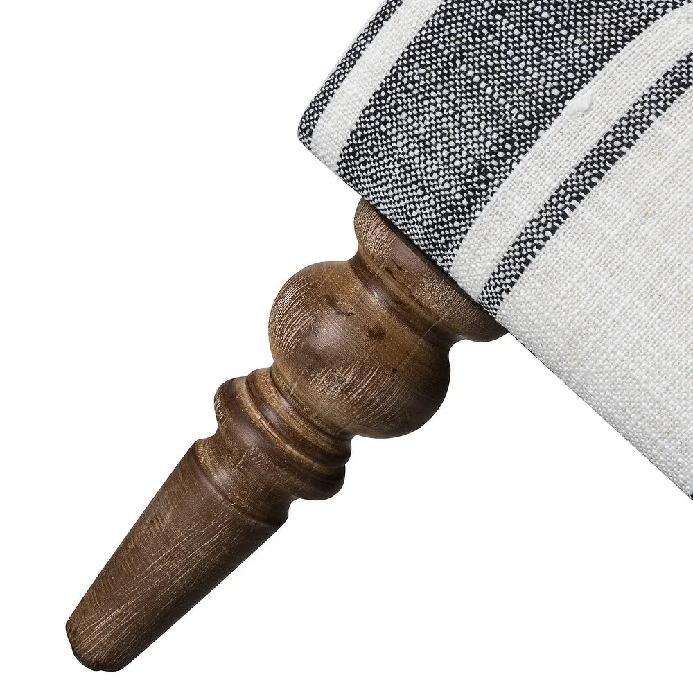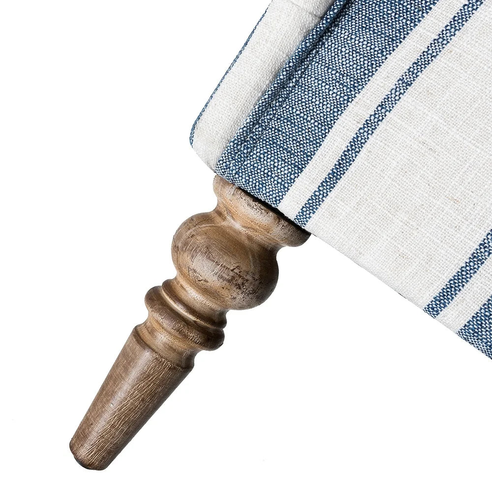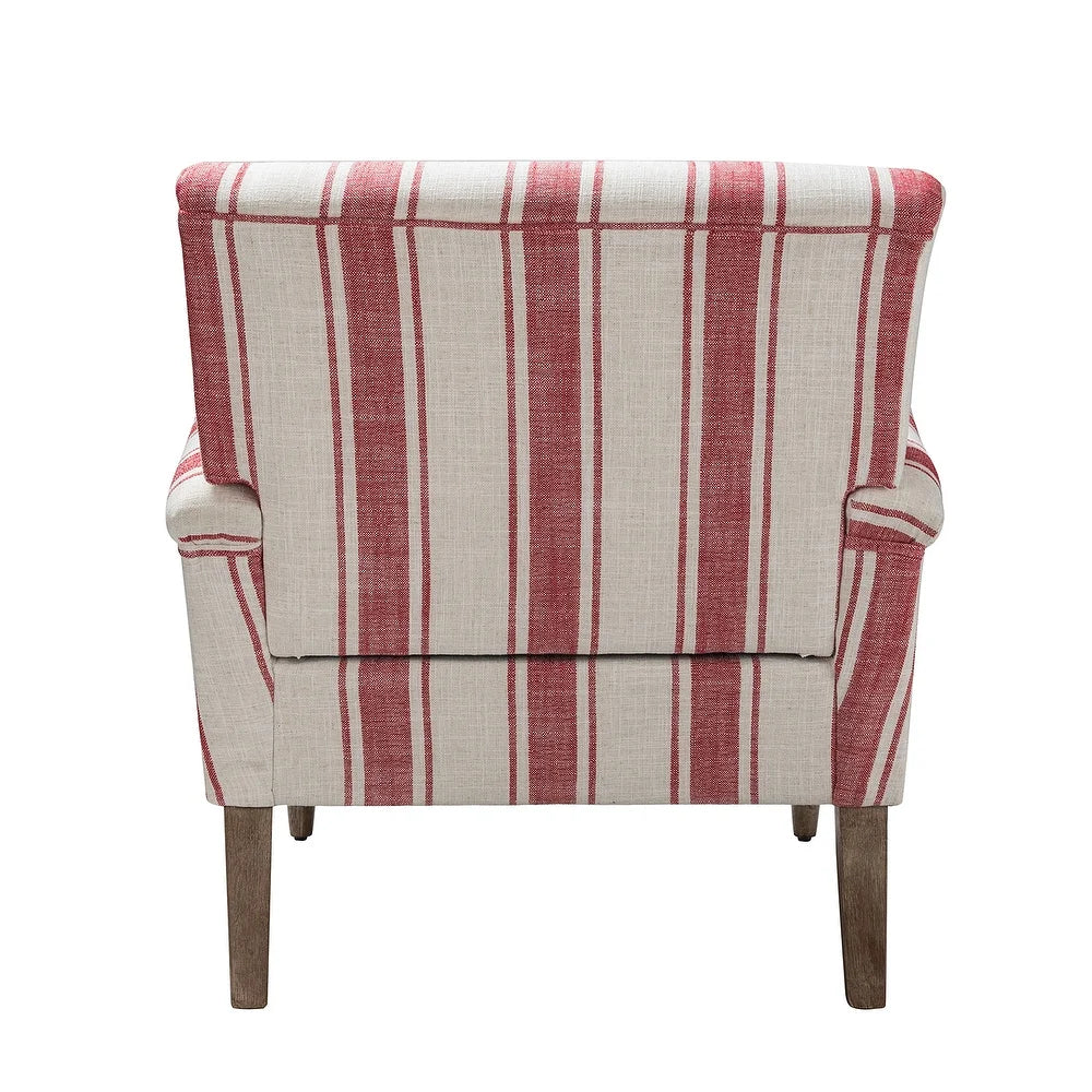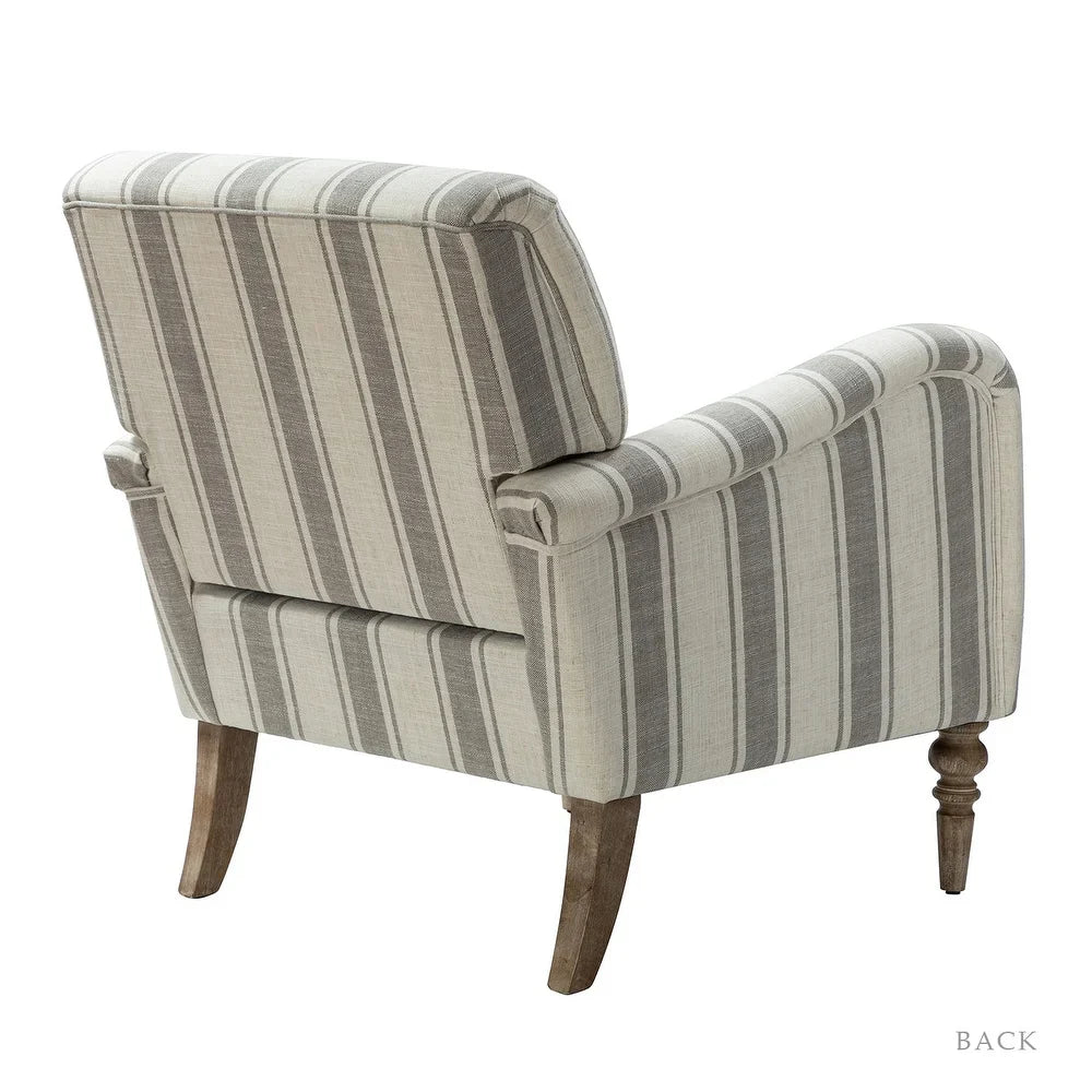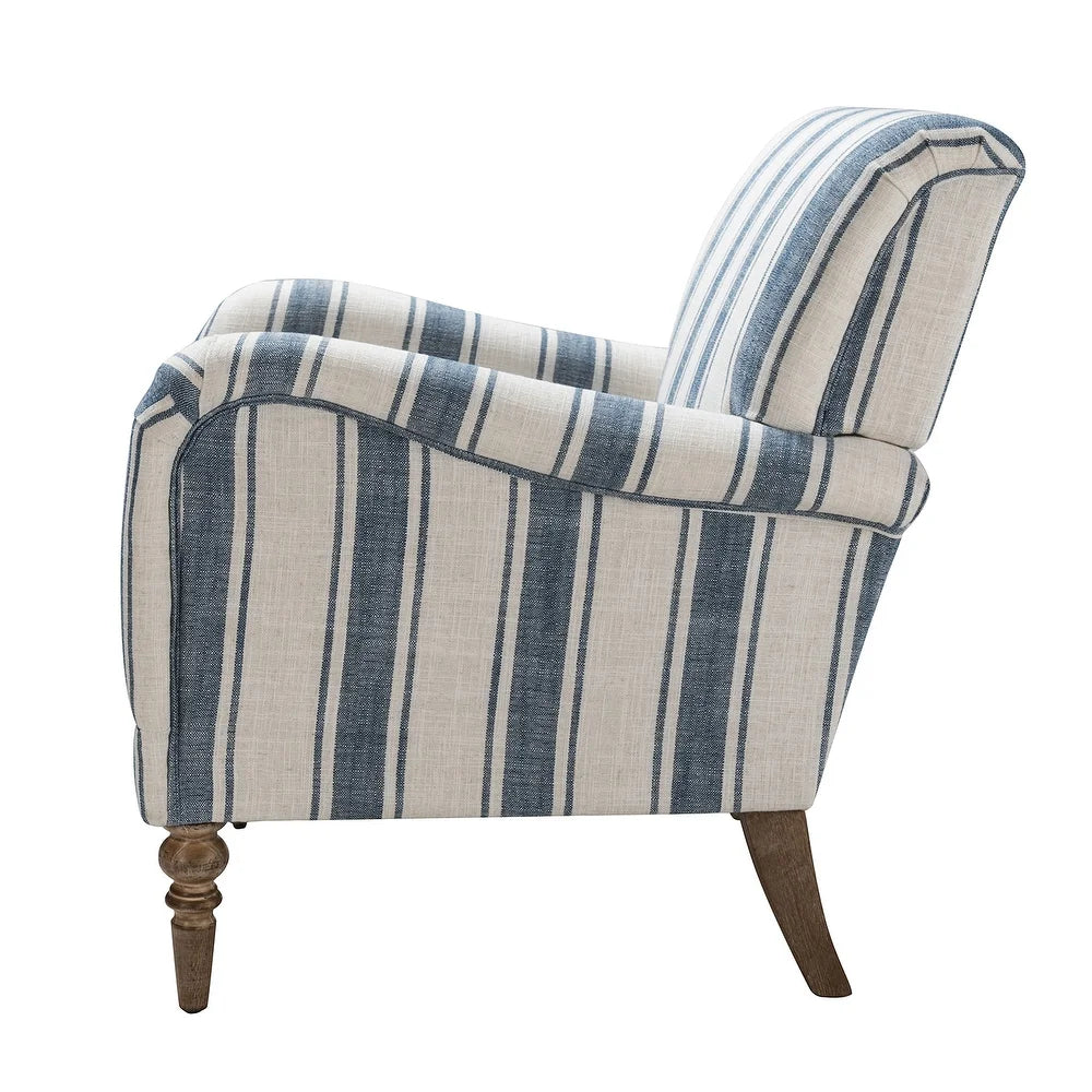 Introduce a touch of glamour to your living room or bedroom with this Iberian upholstered stripe accent armchair. The slightly slanted backrest and integrated arms, along with the retro feet, give this armchair a modern yet classic feel. The premium 100% polyester skin-friendly fabric, on-trend stripe pattern, and high-density foam filling provide both comfort and support. The solid and manufactured wood frame ensures durability, while the retro turning legs and tapered block legs add a timeless appeal to this piece. Perfect for any living room, office, or bedroom.