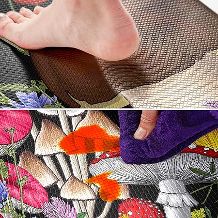 - Mushroom Kitchen Decor:This mushroom and wild flower combination anti-fatigue kitchen mat is like a piece of work of art, allowing you to fully enjoy the visual feast when cooking or working.