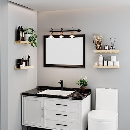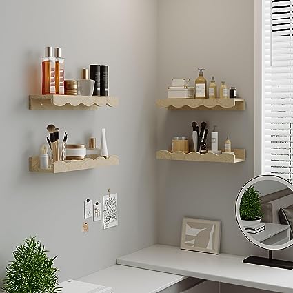 - Attractive Wavy Design: Besides its chic looking, the wave effectively prevents items on each shelf from dropping. You can place picture frames, small plants, photo frames, books, toilet paper, bath towels or decorations on a wood shelf to organize your home space.