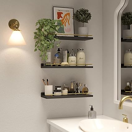 - 【Functional Metal Guardrail】- Besides its nice look, the black metal guardrail effectively prevents items on each shelf from dropping, offering a secure storage space for bathroom accessories such as toilet paper, bathroom canisters, or personal care products including shampoo, lotion container, candle and essential oil. When used as picture ledge, its guardrail provides excellent support for art or picture frame that is without stand. It's time to give your photographs a new home!