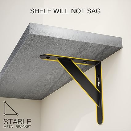 - Solid Wood & Metal Bracket: The wall shelf is made of high-quality paulownia wood and reinforced steel brackets. The Paulownia wood is lightweight but strong and the metal triangle brackets enhance stability to hold up to 44 lbs per shelf.