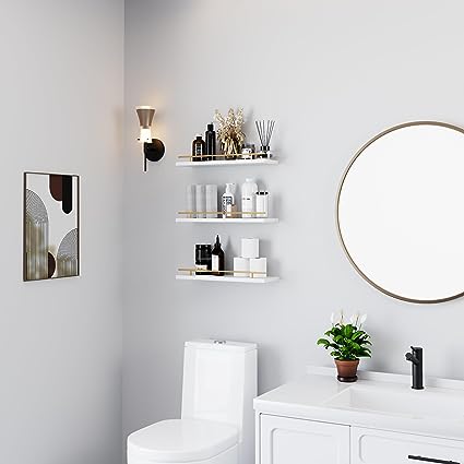 Set of 3,Wall Shelves for Bedroom,Kitchen,Living Room,Invisible Brackets,White and Gold