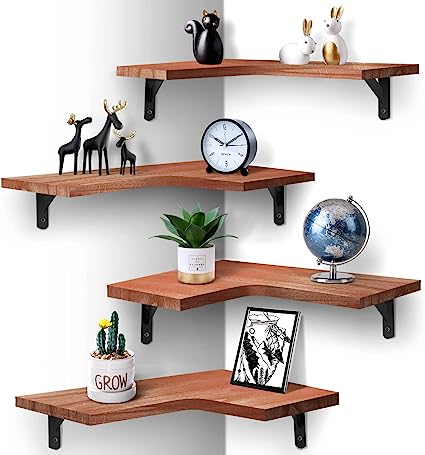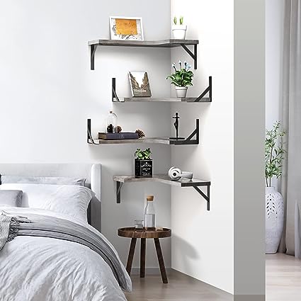 Set of 4, Floating Corner Shelves for Wall Décor Storage, (Grey)…