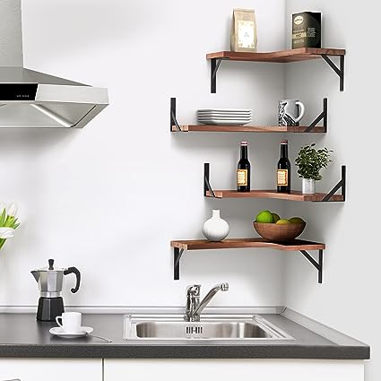 - Rustic Wall Shelves: Torched wood finish and curve design for board and matte finish metal bracket features a carbonized black accent, which will be a great rustic addition to your wall.