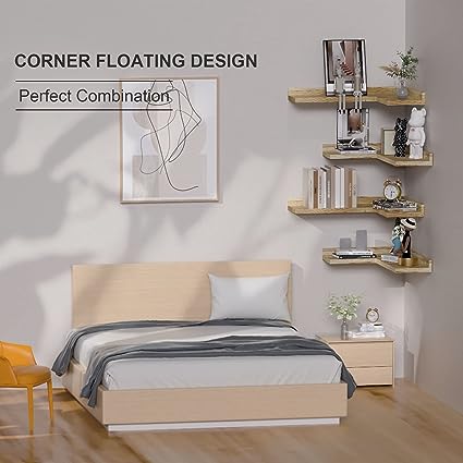 - Multifunctional Corner Shelves: Our rustic wood floating corner shelves are ideal for living room, bedroom, bathroom, kitchens, offices, etc. You can put all 4 shelves on the same room, or you can disassemble them to meet your decorating and storage requirements in different rooms, helping you organize your space while bringing you the beauty of nature!