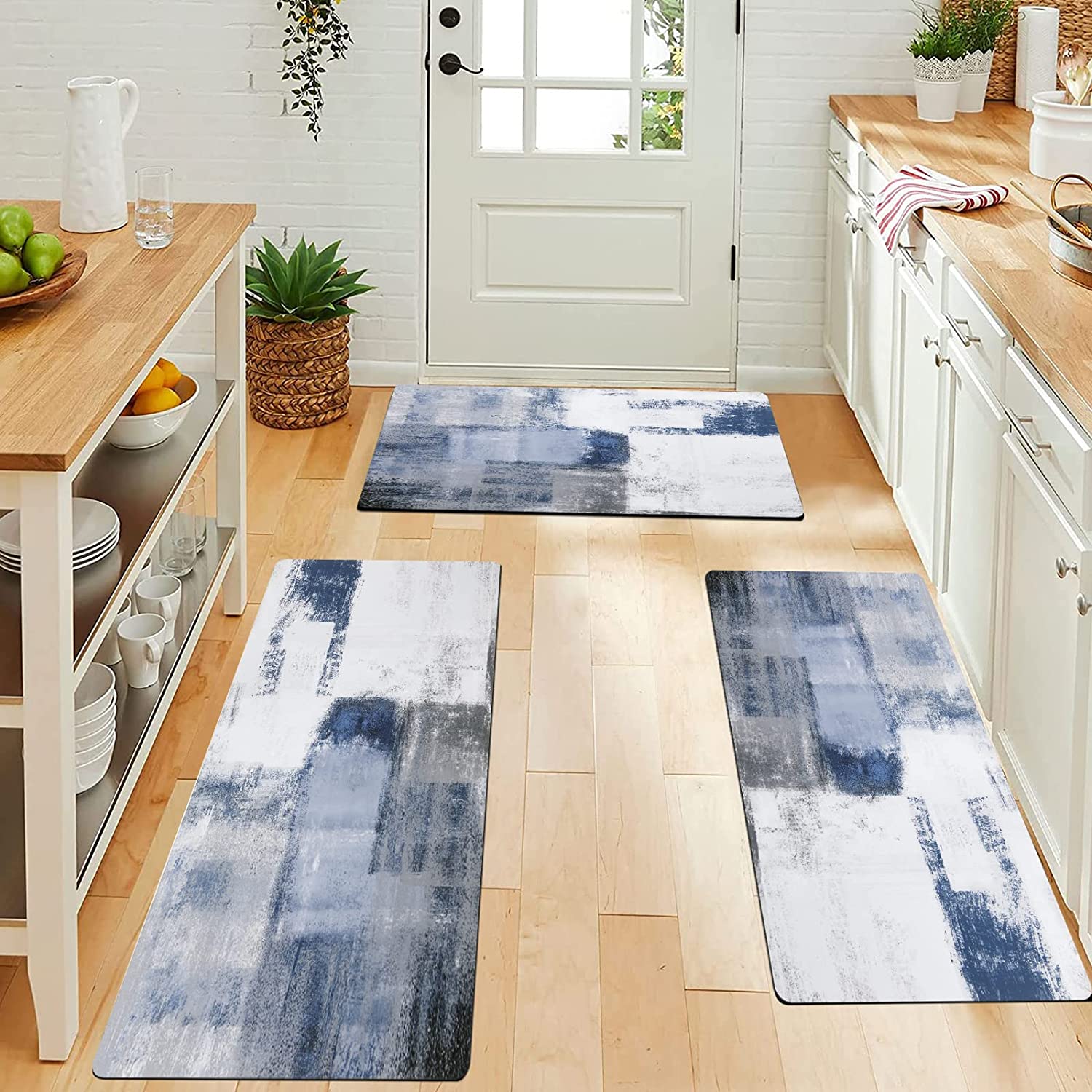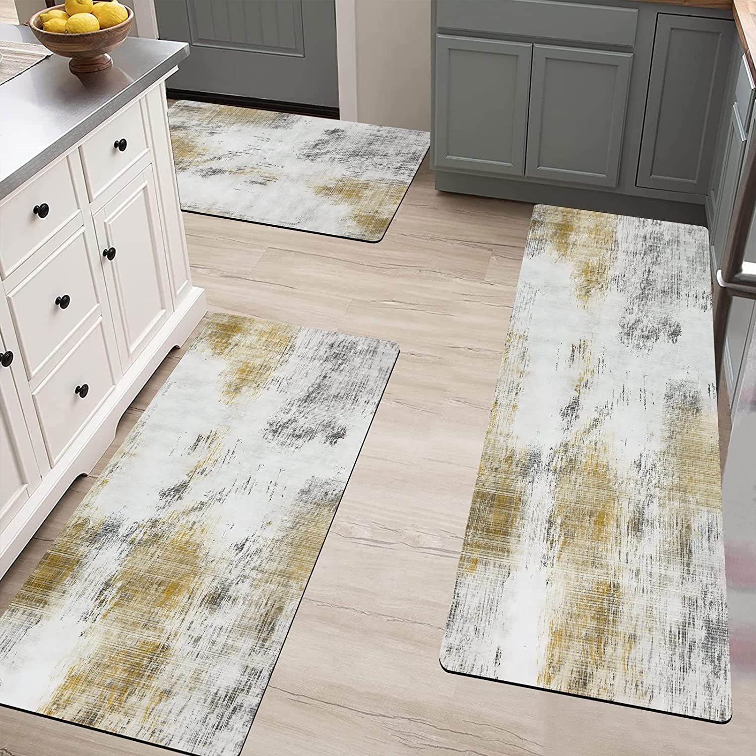 - Cushioned Kitchen Rugs and Mats Set: This padded kitchen runner rug is made with quality and functionality, the 0.2 inch cushioned natural rubber foam kitchen area rug can give you padding and very soft to stand on, also the low profile design make it perfect to fit under the door.