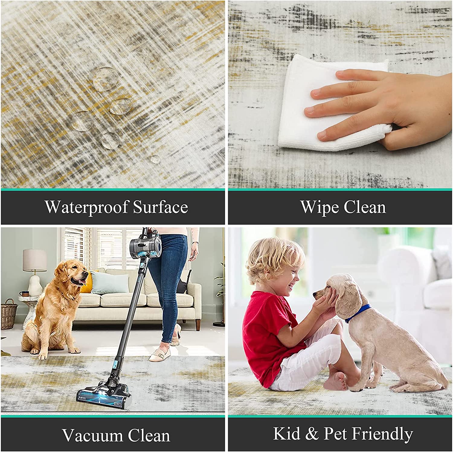 - Waterproof Stain Resistant Kitchen Mat: Constructed With waterproof surface, it is very easy to wipe up if you have to spill something on it, easy to sweep or vacuum clean. Minimal Effort. Maximum Style.