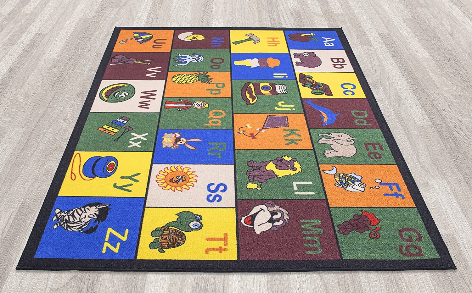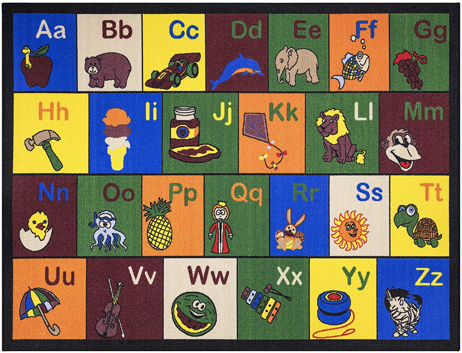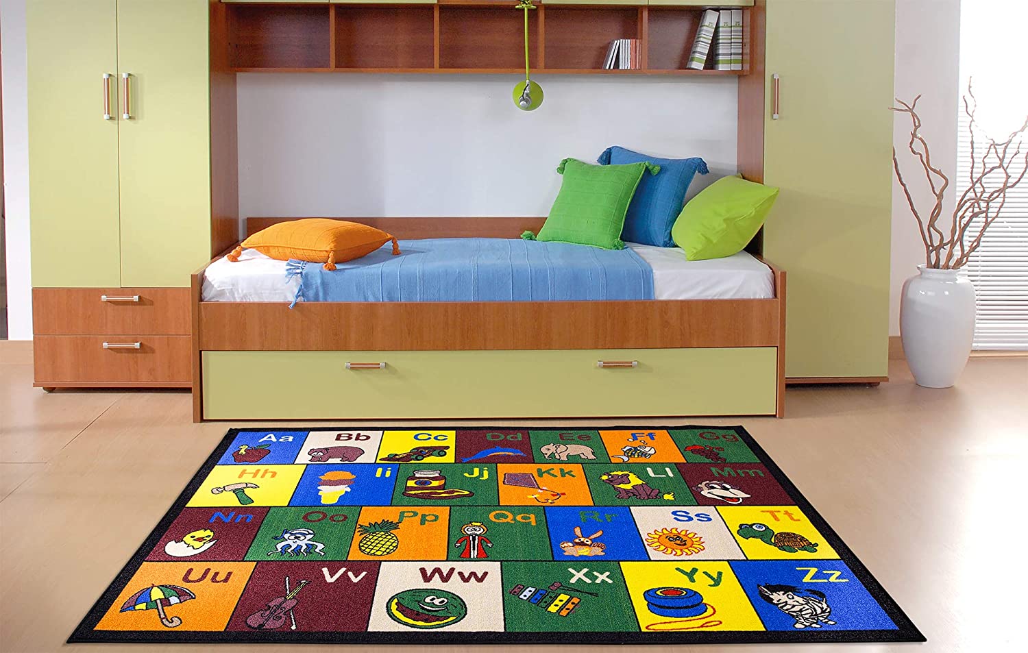 "Learning comes to life with our Ottomanson jenny collection. This playful collection features vibrant colors, fun designs, letters, numbers and shapes that kids can identify easily and is perfect at attracting kids’ natural curiosity for learning and discovery. This children's Multicolor color educational Alphabet (non-slip) kids classroom area rug depicts colorful upper and lower case letters in the alphabetical order. Each letter is featured with a charming shape of an image corresponding to that specific letter. Present your kids with this entertaining educational rug and accent your space. High quality construction with non-slip rubber backing, soft nylon pile and reinforced overlock edges let this game rug offer years of entertainment safely. These long-lasting kids educational rugs are available in multiple sizes and ideal for daycare centers, pre-schools, nursery schools, kindergarten classrooms, childcare centers, children's bedrooms and playrooms. They are also ideal gifts for holidays, baby showers and birthdays and are guaranteed to put a smile on their faces. Pick a quality rug from our jenny collection to promote educational playtime and accent your kids’ room, nursery, classroom, daycare or playroom. "