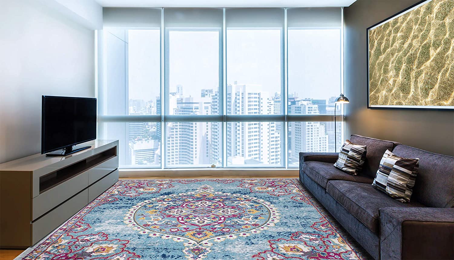 - Fashion-inspired rug exhibits dazzling Abstract or updated timeless designs