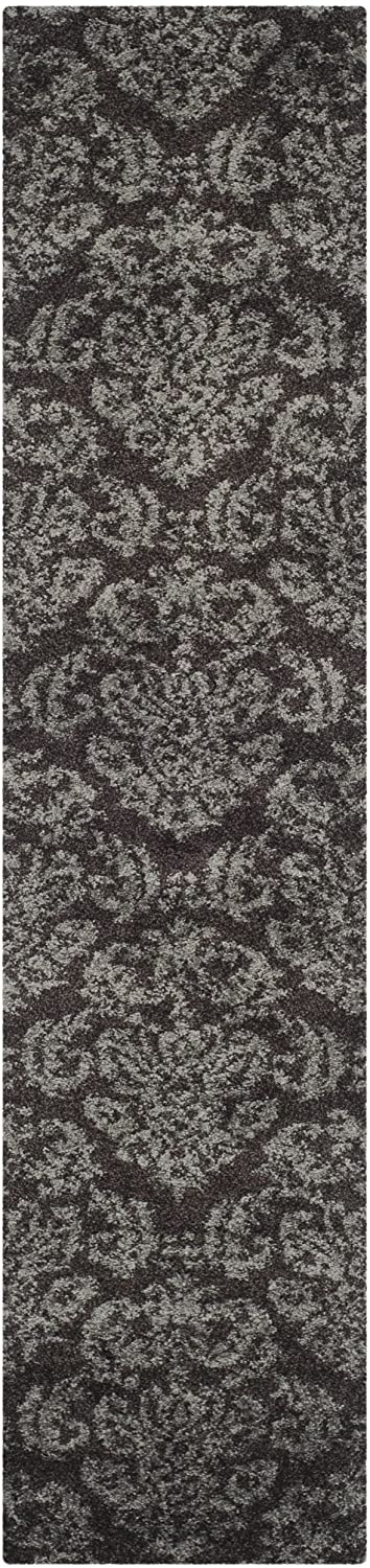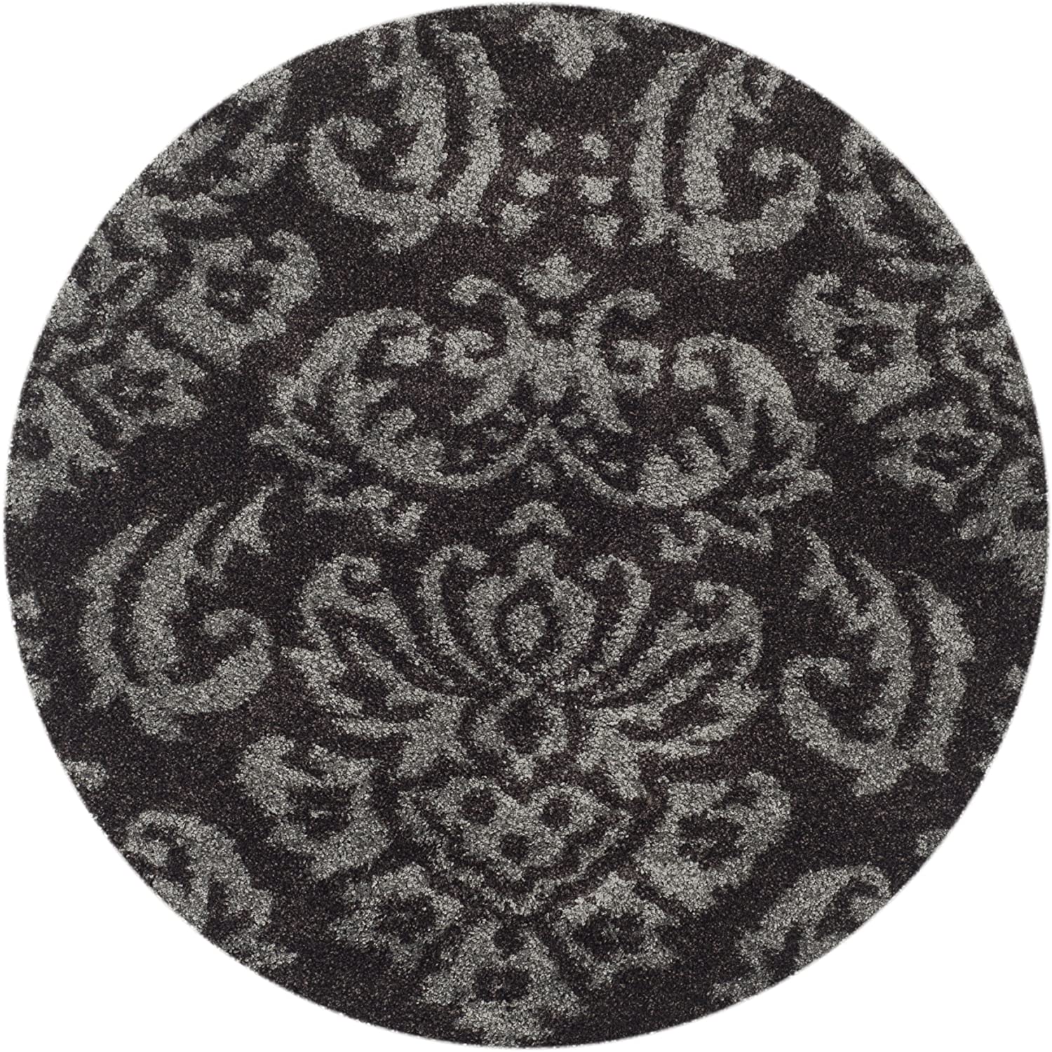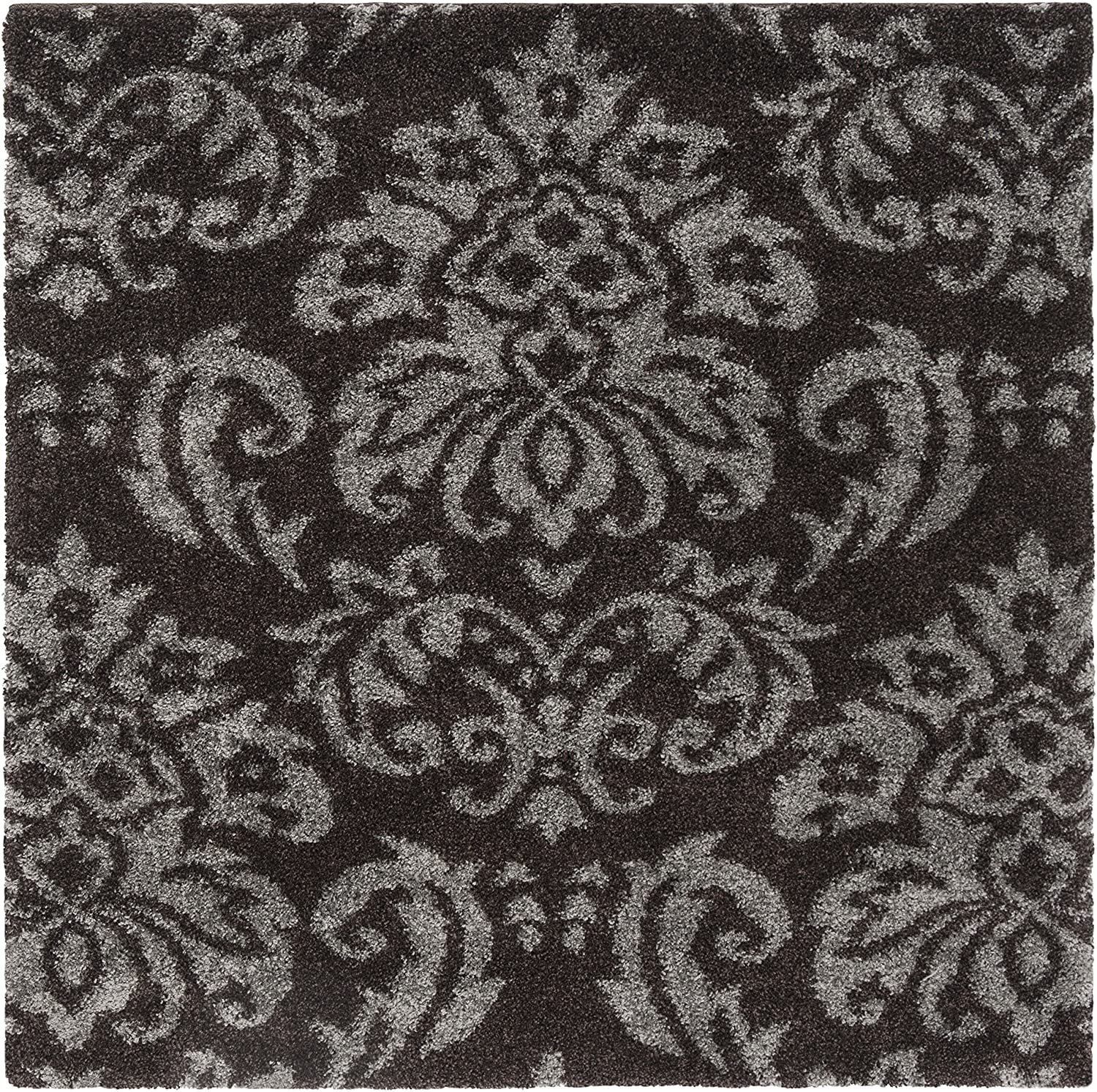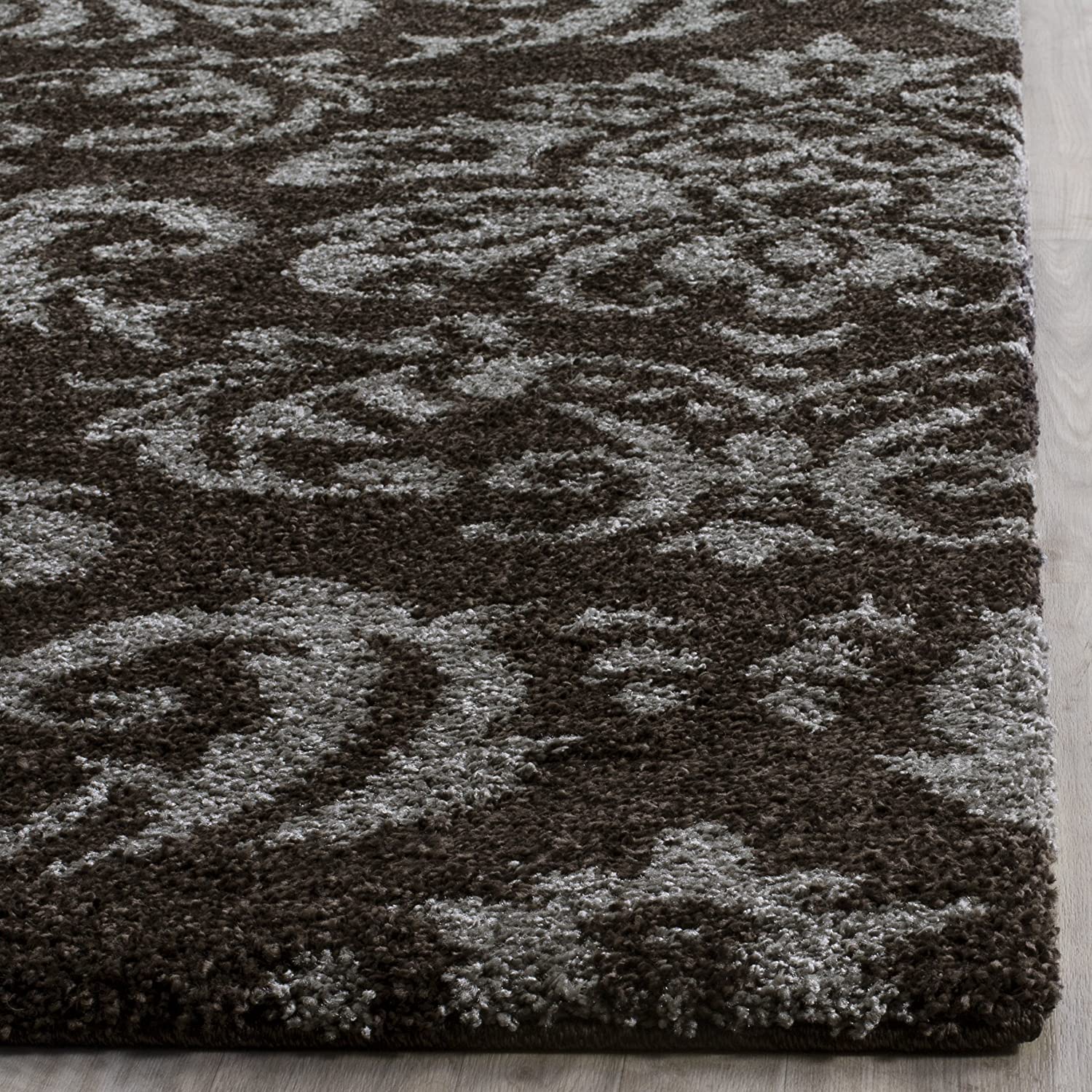 Damask Plush 1.2-inch Thick Area Rug, Dark Brown / Smoke