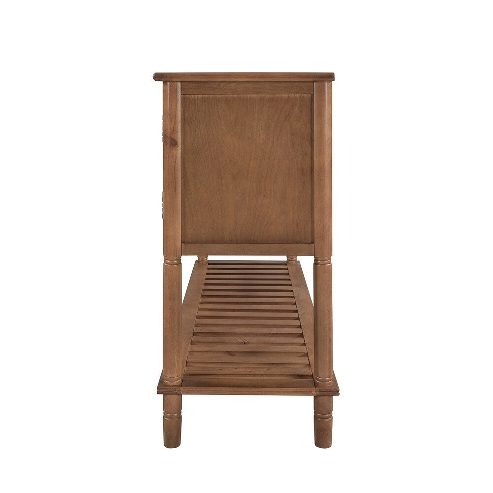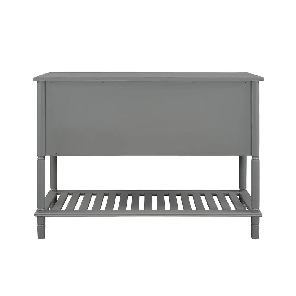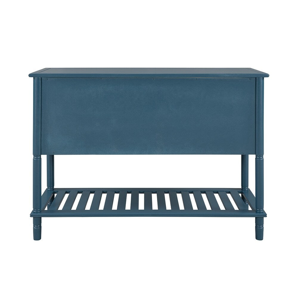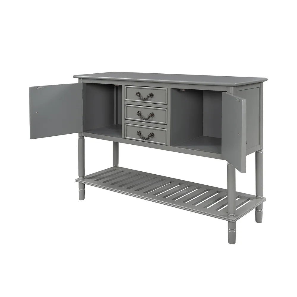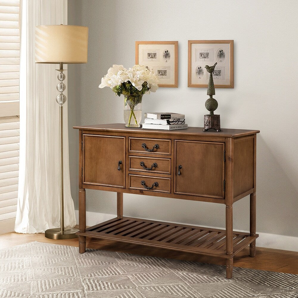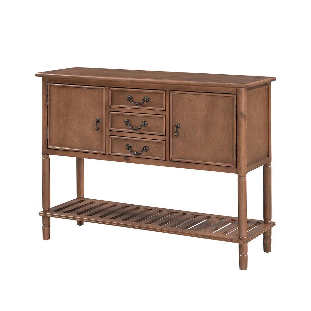 Create a perfect combination of function and aesthetics for your home with this amazing console table. This table comes complete with two front-facing cabinet doors that open to reveal 2 spacious interiors, perfect for stowing away your larger necessities. The 3 middle drawers with drop Handles offer plenty of space to hold smaller items. With this versatile accent console table, you can casually put it in the entryway to create a guest-greeting decorative display while the spacious bottom shelf is the perfect place for storage baskets, shoes, and more. Design in a chic transitional style, this piece is sure to bring a brand-new look to your family and more convenience to life.