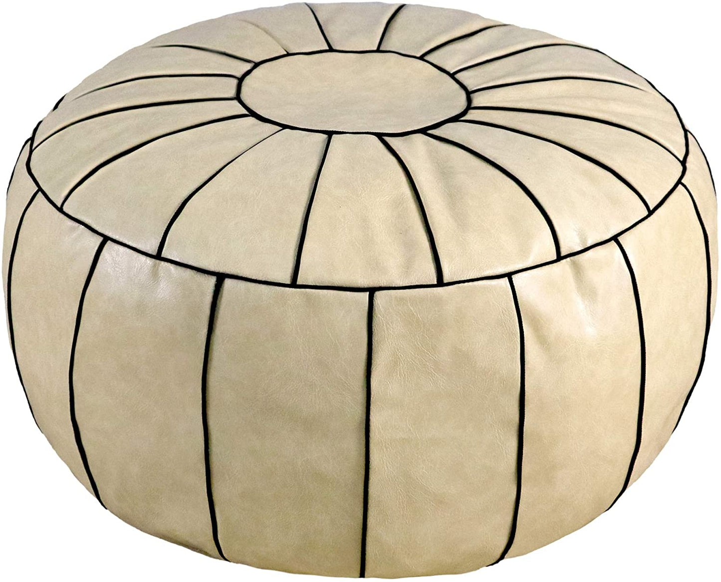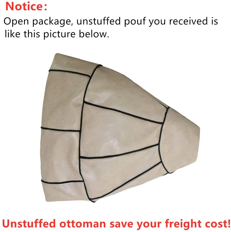 - HIGH QUALITY MATERIAL AND CRAFTSMANSHIP:These premium Morocco leather pouf ottomans is stylish, durable and made with quality and care! The expert stitching and color contrast provides a tailored feel, as if it were custom made for you! The combination of the textured feel, beige and black piping makes for the ideal footstool in your living room! The invisible zipper design does not rub the floor when moving, zipper is durable and easy for open and close.