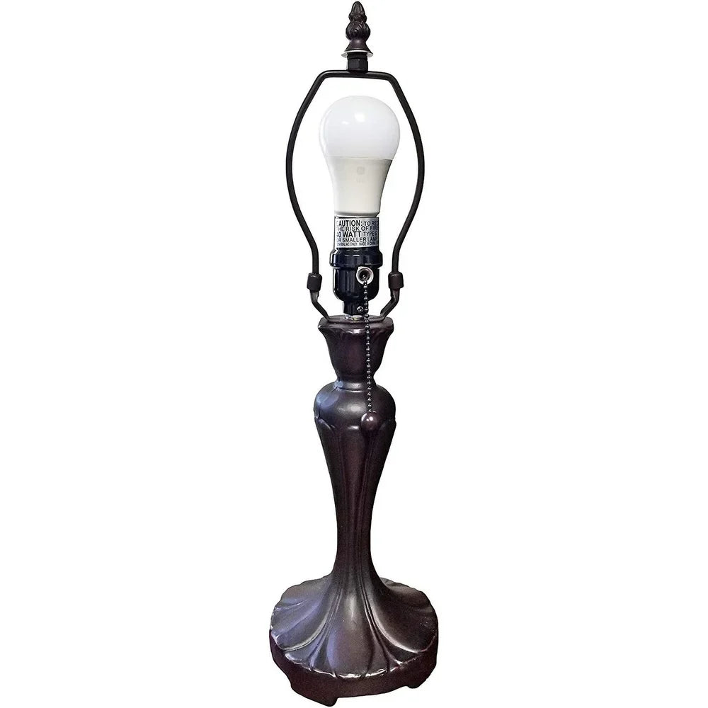 Bring a warm glow to your space with this attractive Tiffany-style art glass table lamp by Amora. Stunning glimmers of organic colors are arranged in a geometric pattern to complement the dark brown finished base, endearing this art glass table lamp to any decor.