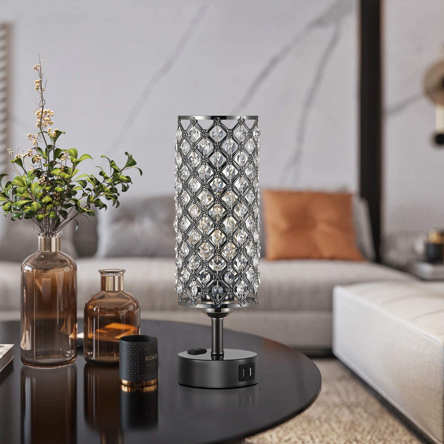 tuba Crystal Touch Control Table Lamp with Dual Fast Quick USB Ports Acaxin 3-Way Dimmable Accent Bedside Light with Bulb
