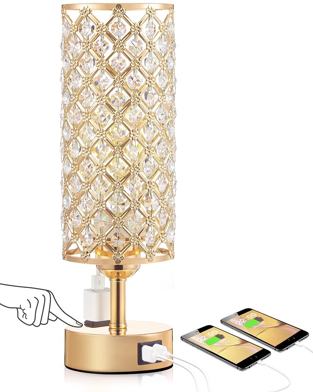 - ❤❤Modern Design & Great Gift--This gorgeous gold crystal touch lamp looks high-end and mysterious. Its sparkling crystal shimmering add beauty to your room. And it's usb port and outlet is very convenient, add much happiness for daily life. It will be a great gift for your families and partner.