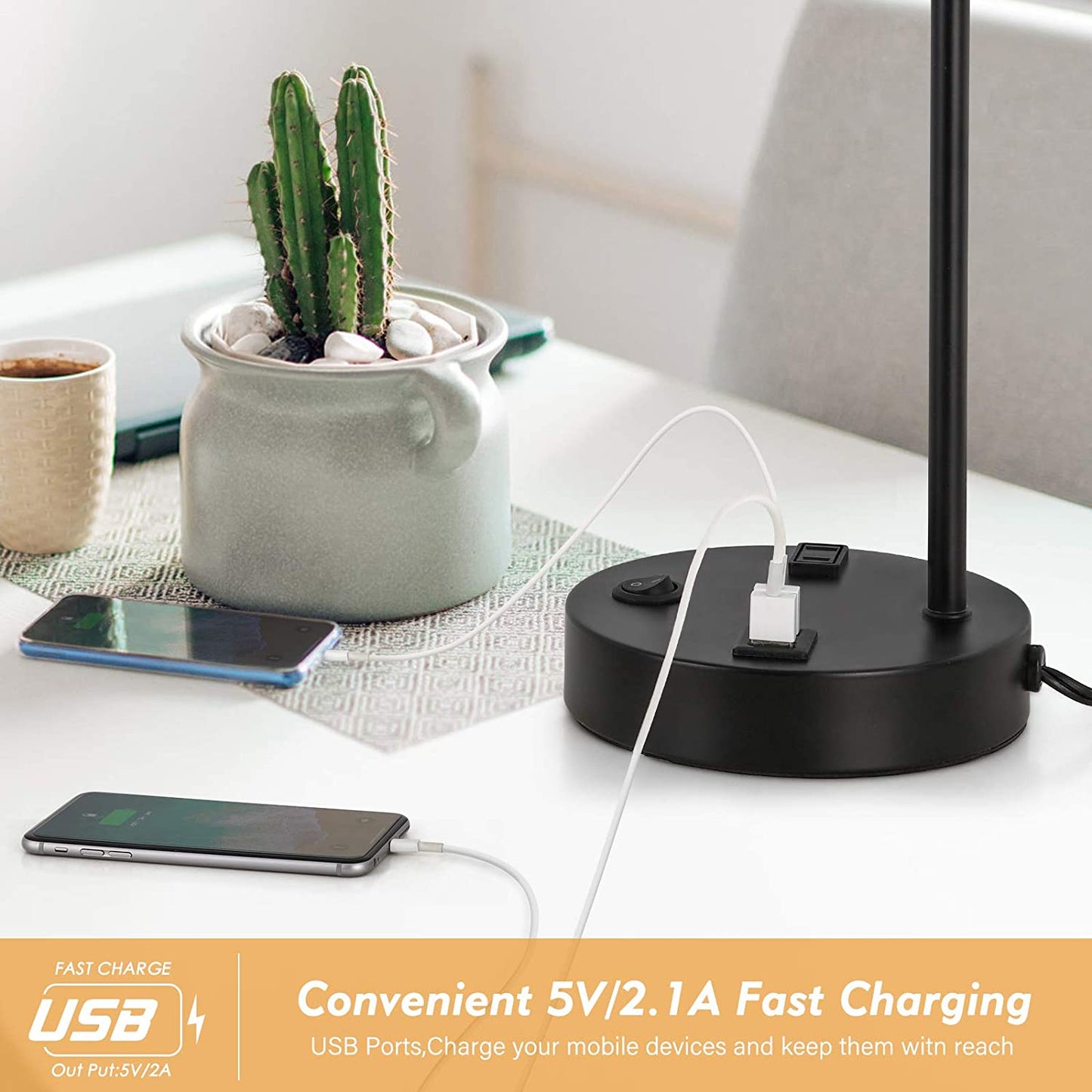 USB Modern Table Lamp with Outlet, Industrial Farmhouse
