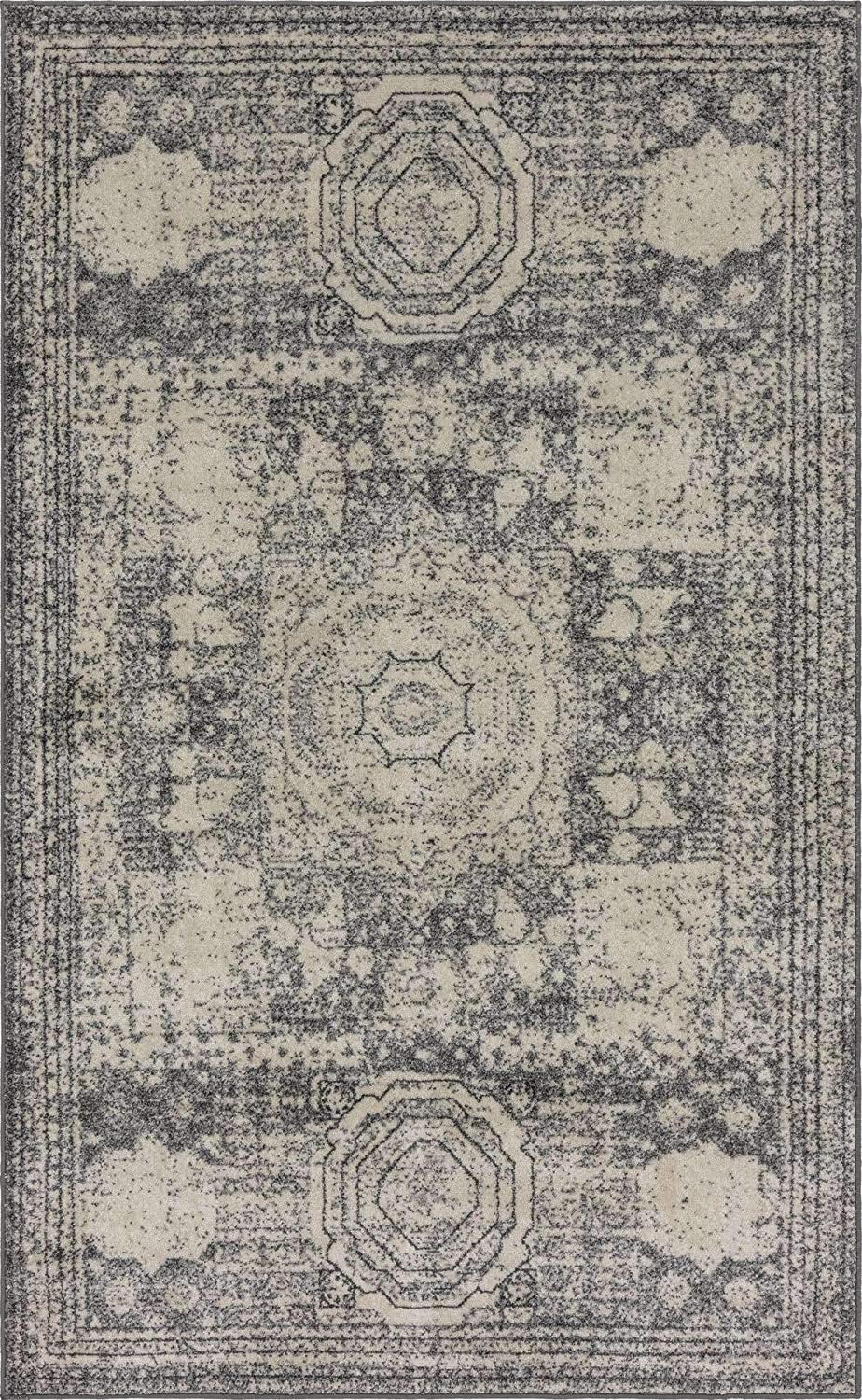 Bromley Collection Vintage Traditional Medallion Border Ivory Area Rug