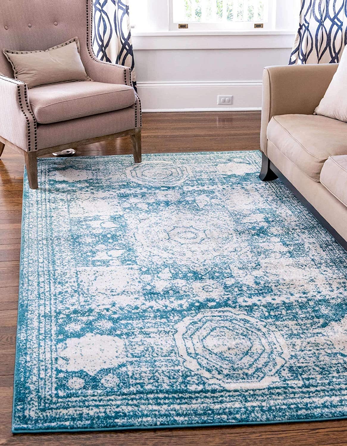 Vintage Traditional Medallion Border Turquoise Area Rug