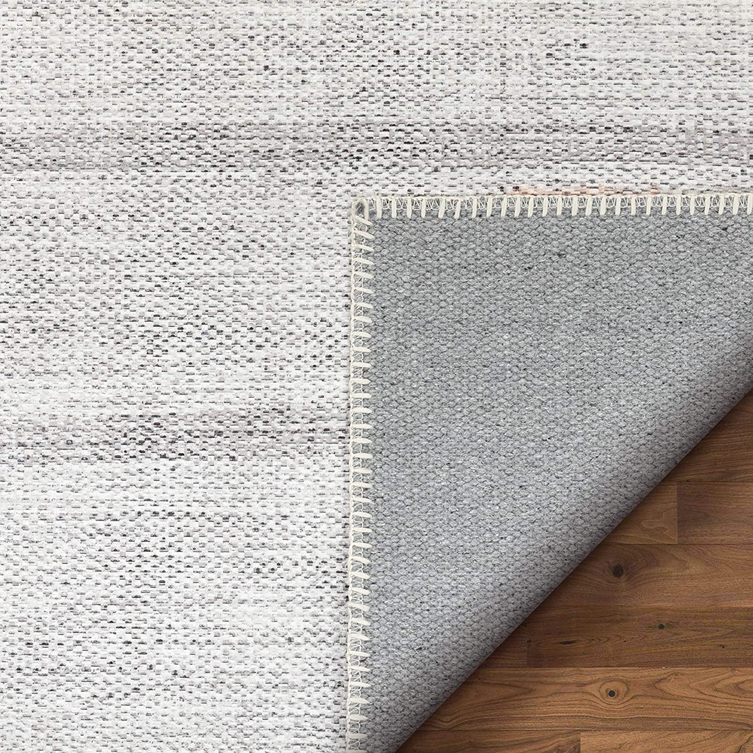 - Flat, shed free polyester chenille upper with a recycled cotton backing that's safe for wood floors.
