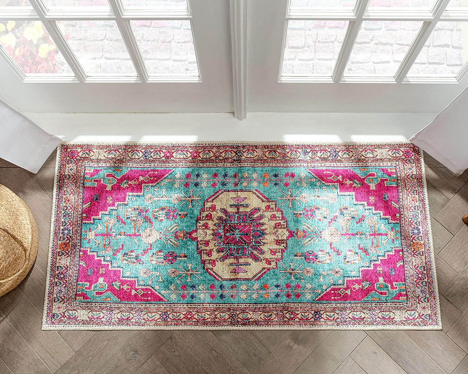 Shasta Blue Fuchsia Machine Washable Vintage Distressed Persian Area Rug