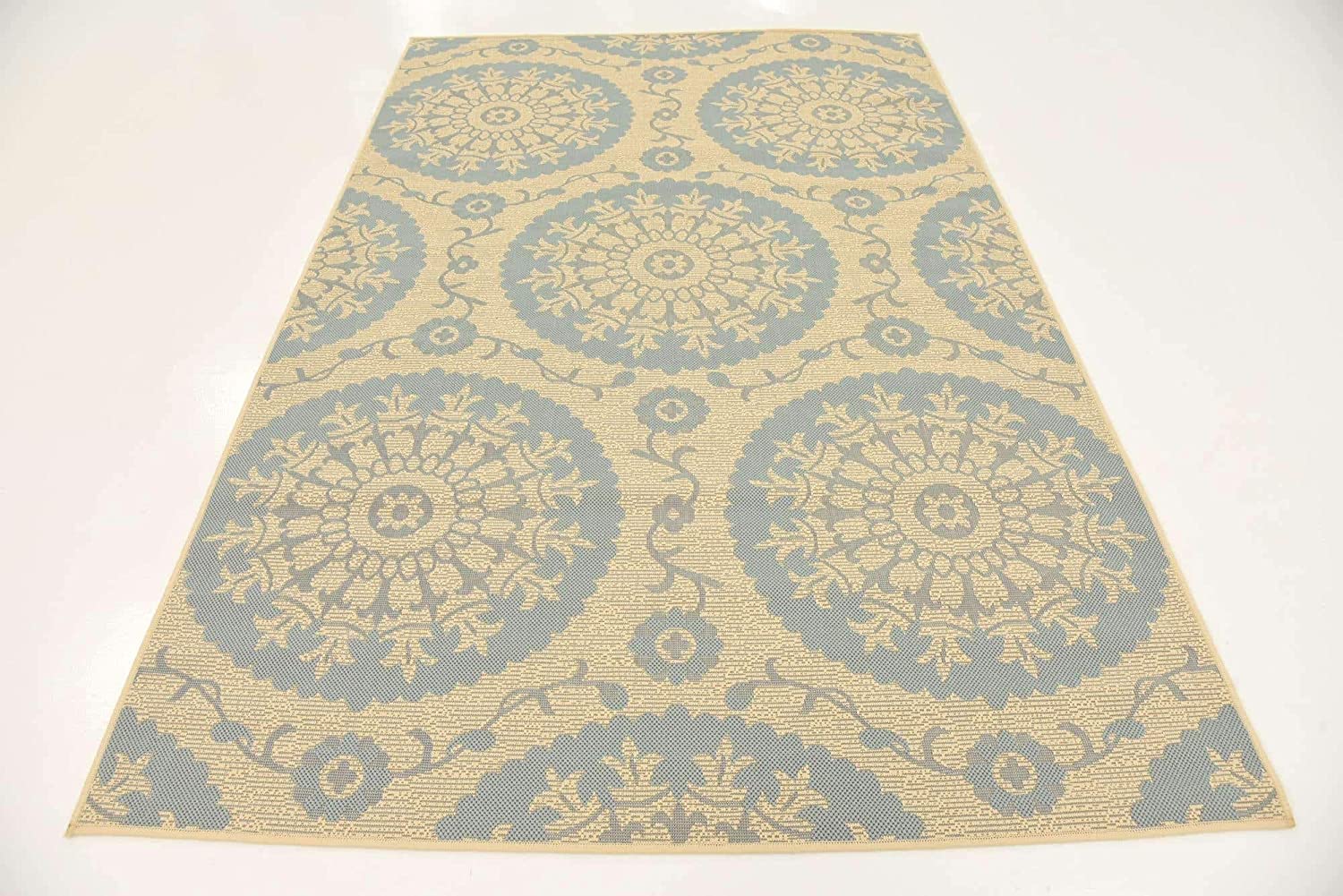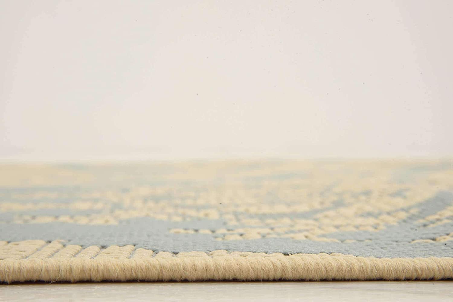 - Pile Height and Thickness: 1/6" - Colors: Light Blue/Beige