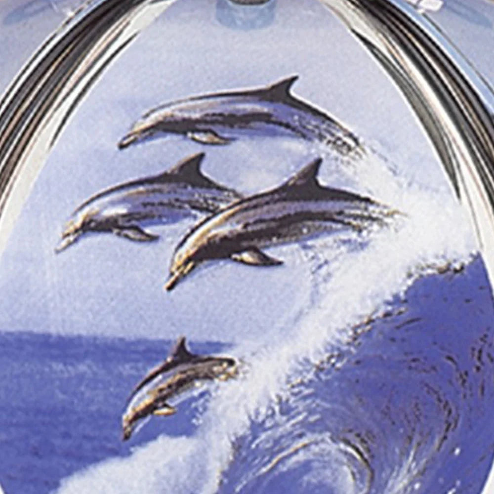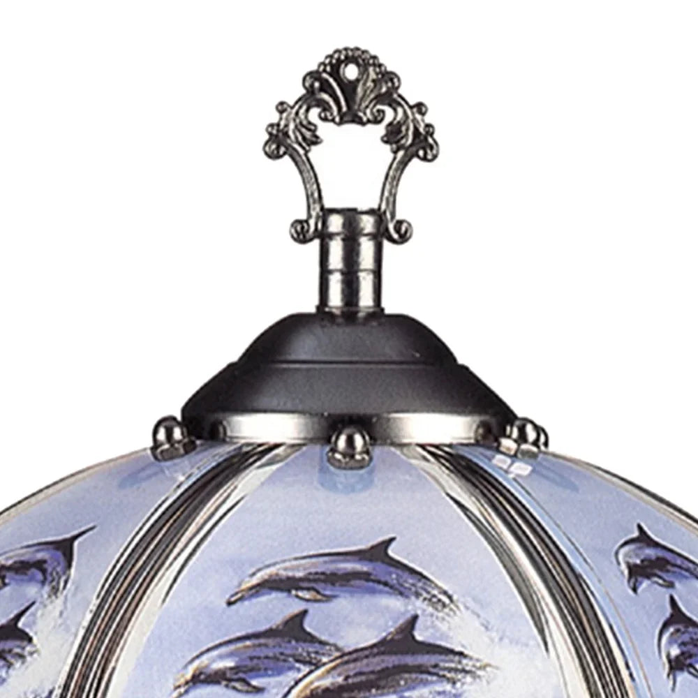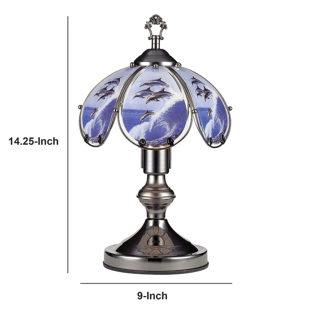 Umbrella Shade Glass Table Lamp with Dolphin Print, Silver