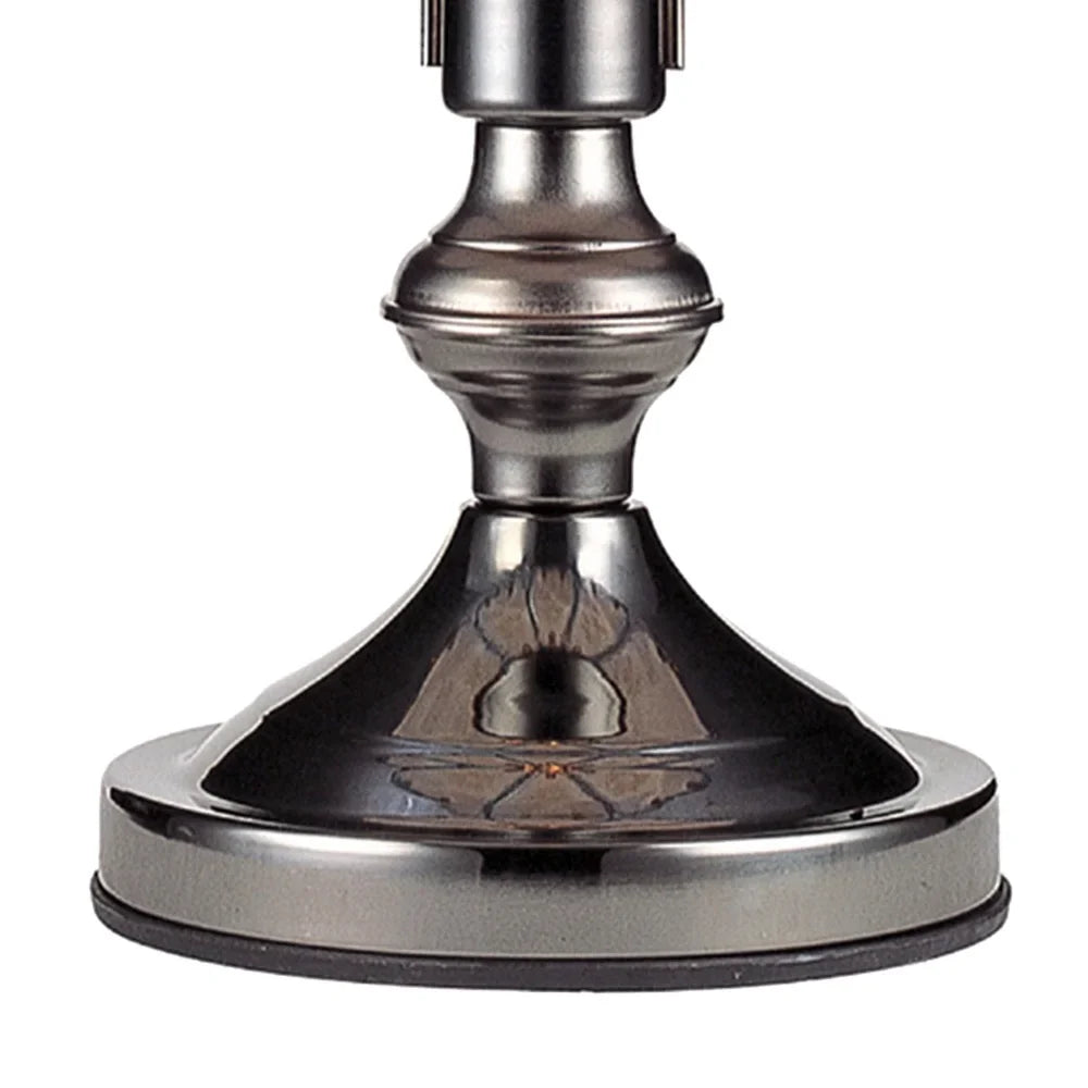 Unique and distinct in appeal, this table lamp is here to attract many eyes and turn their heads. The umbrella design glass shade with dolphin print adds to the overall appeal. The turned tubular metal support with tier design base adds to the stability and strength of the entire piece.