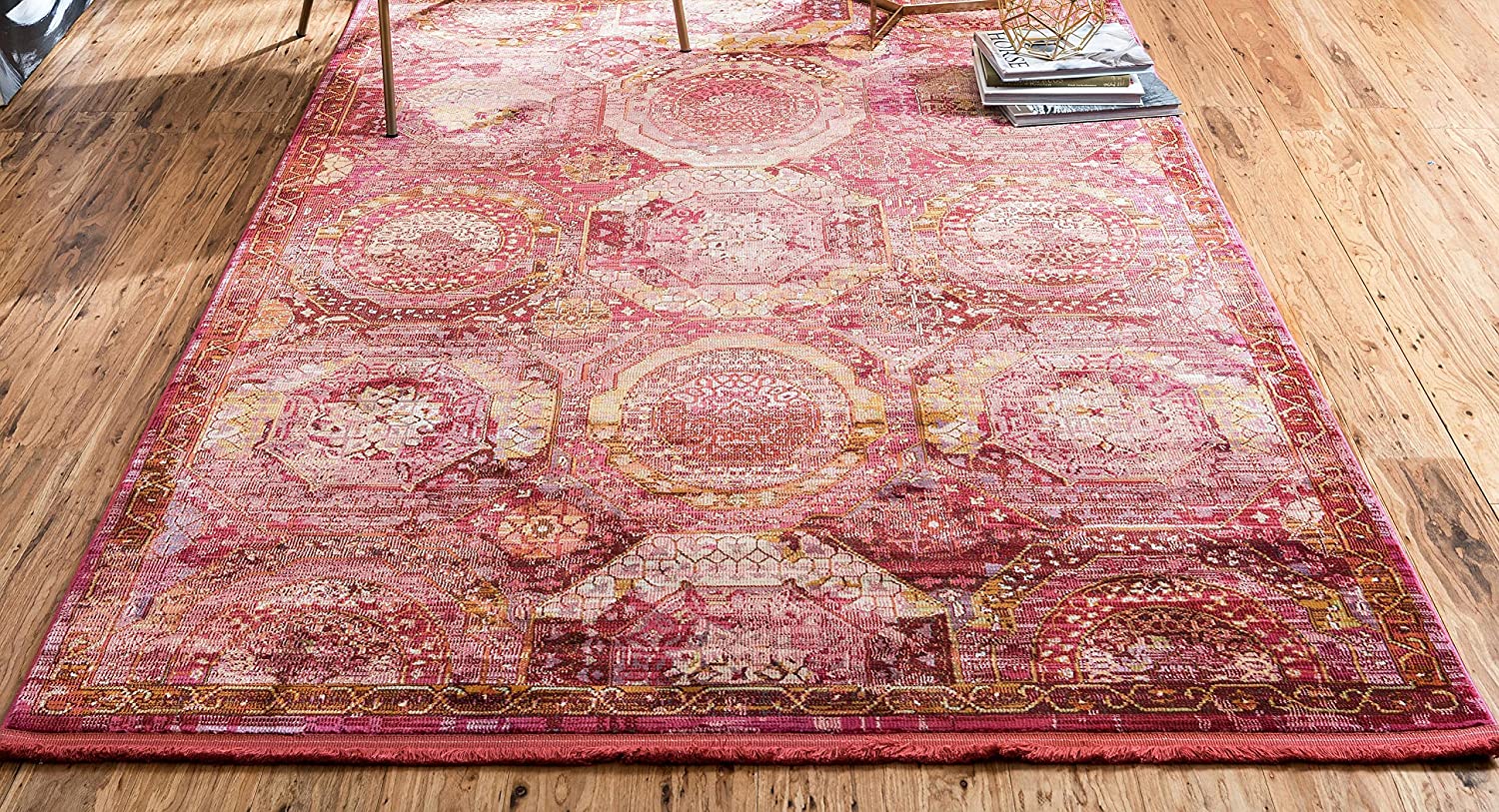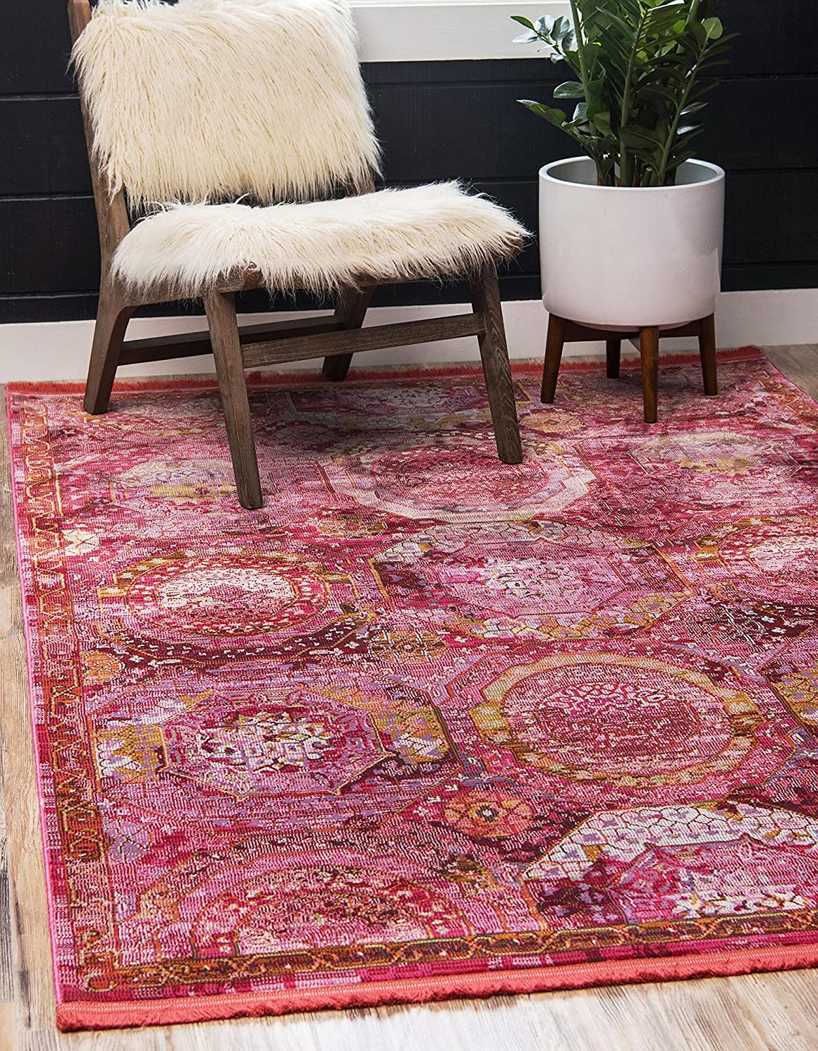 Baracoa Collection Bright Tones Vintage Traditional Pink Area Rug