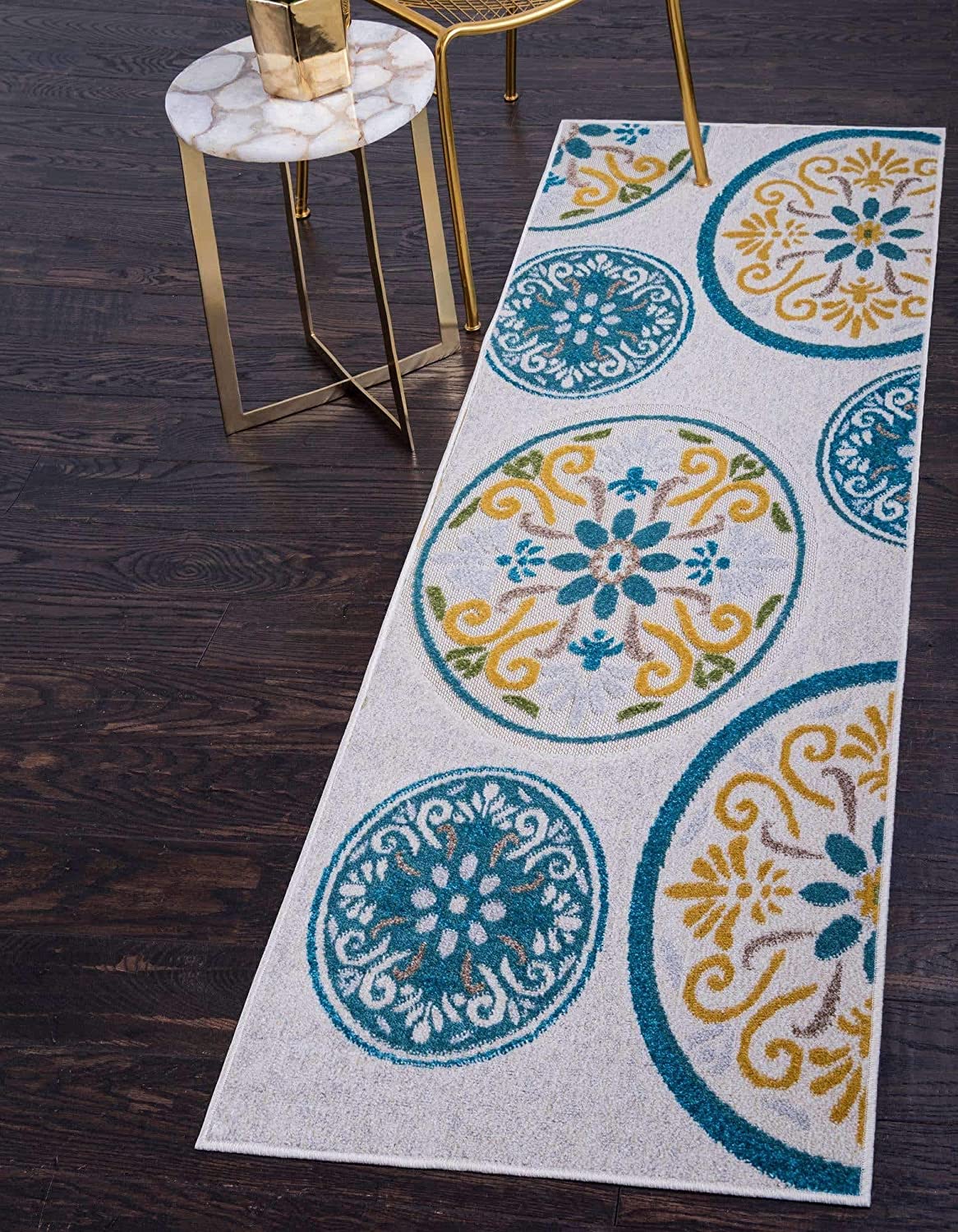 - Pile Height & Thickness: 1/6" - Colors: Ivory/Teal