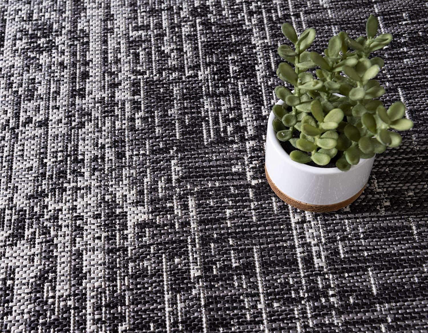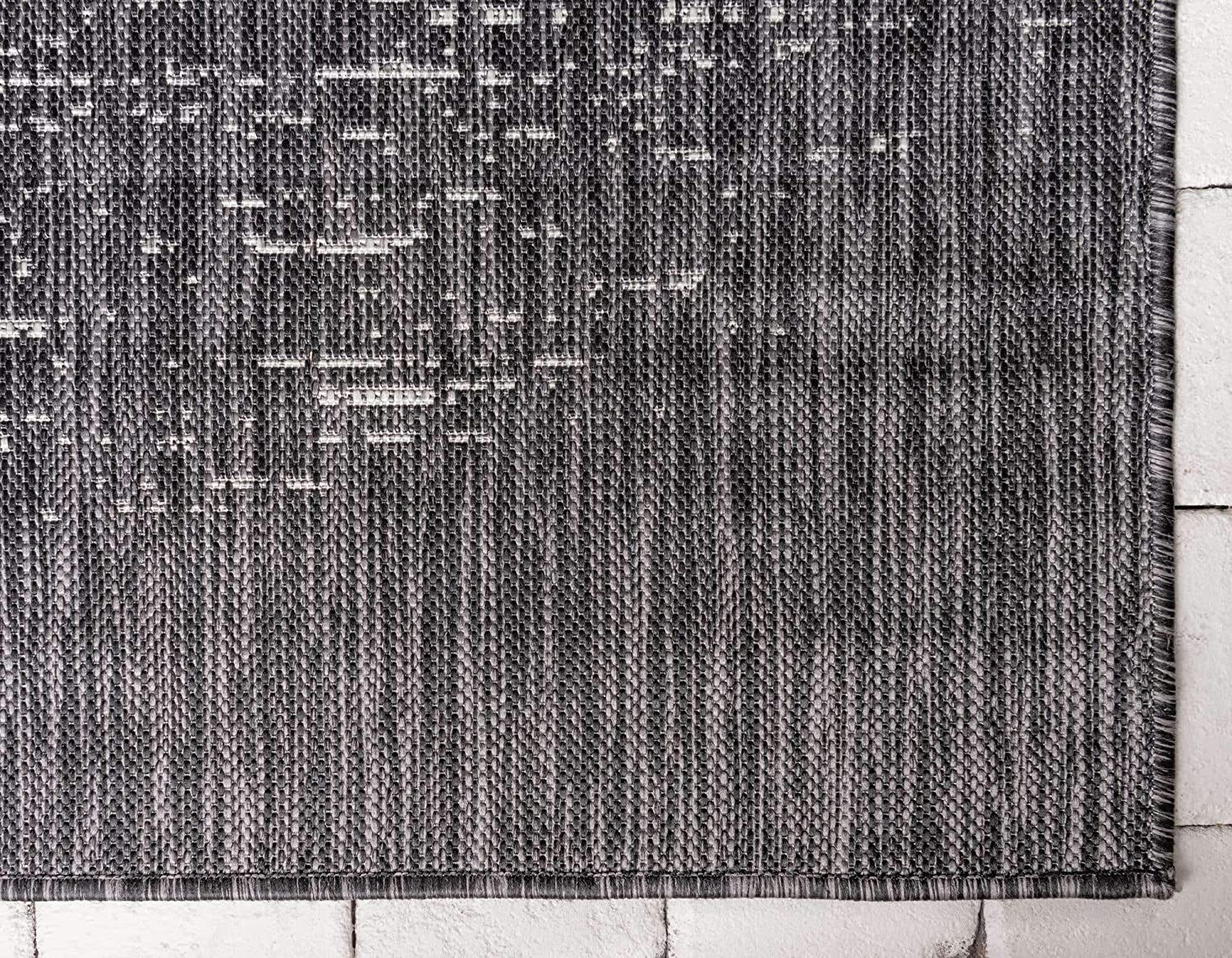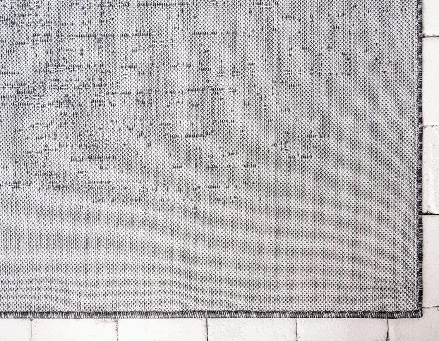 Outdoor Modern Collection Distressed Gradient Transitional Charcoal Gray Area Rug