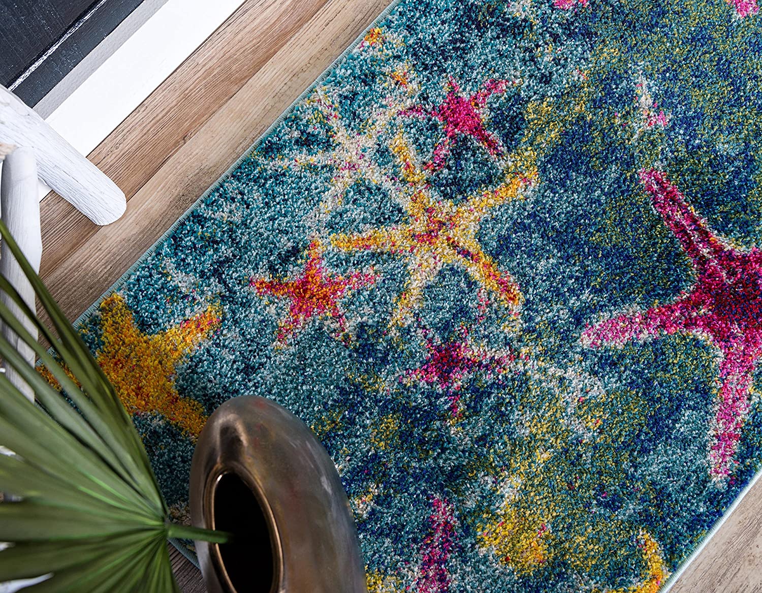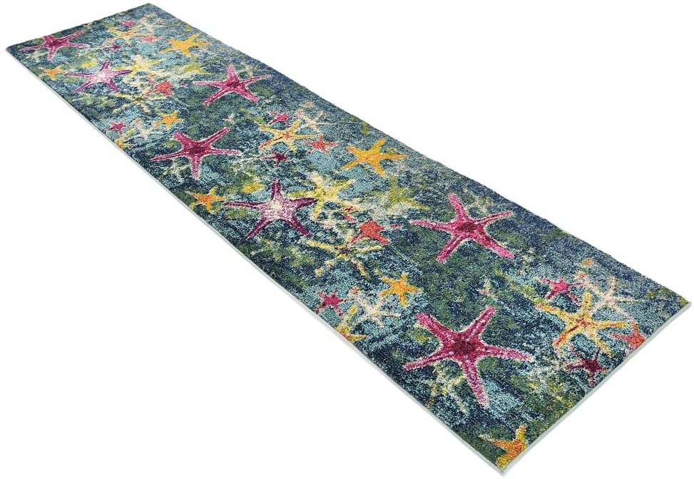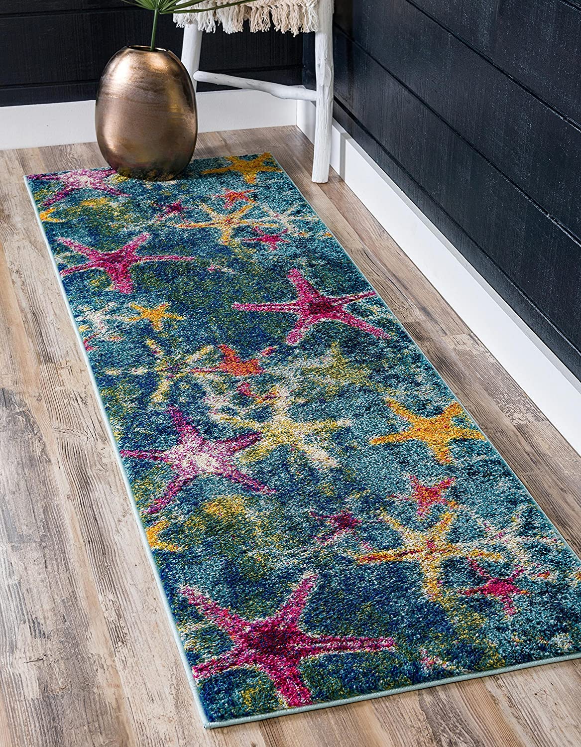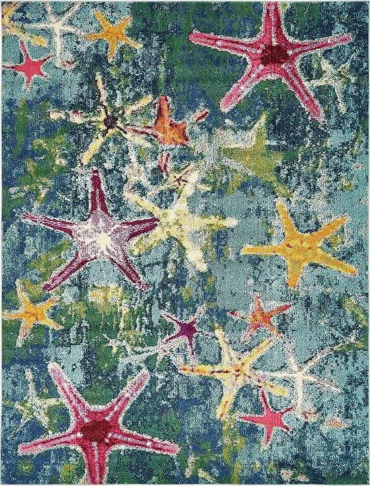 Coastal Modern Bright Colors Starfish Soft Area Rug, Navy Blue/Teal