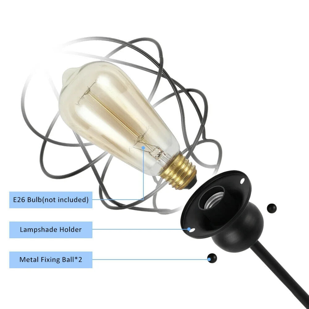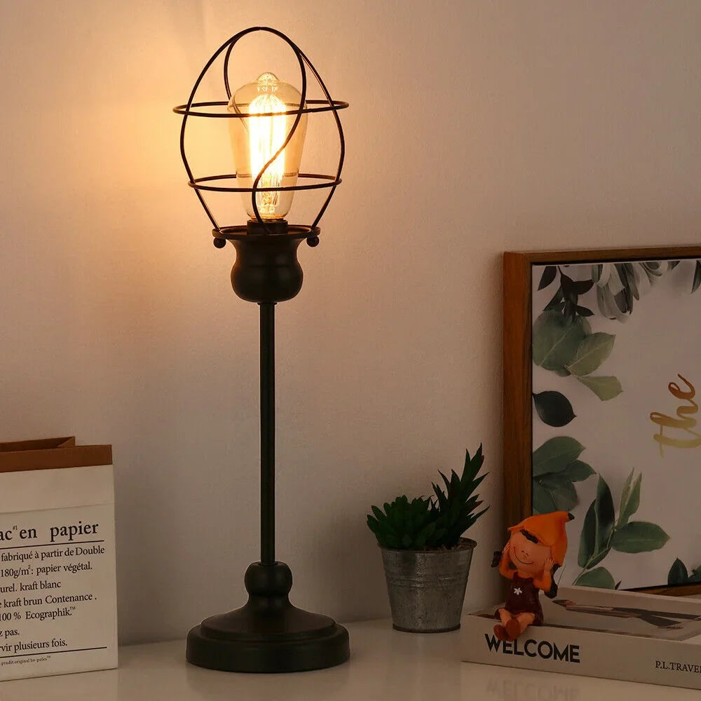 - [INDUSTRIAL & VINTAGE DESIGN] Oumilen industrial table lamp features a black metal pole, metal lamp base and blub shaped metal lampshade, which creates the industrial look and add a touch of aesthetic to any room. The lampshade with bulb shaped metal cage design protects your bulb and gives a new elegant look in your room.