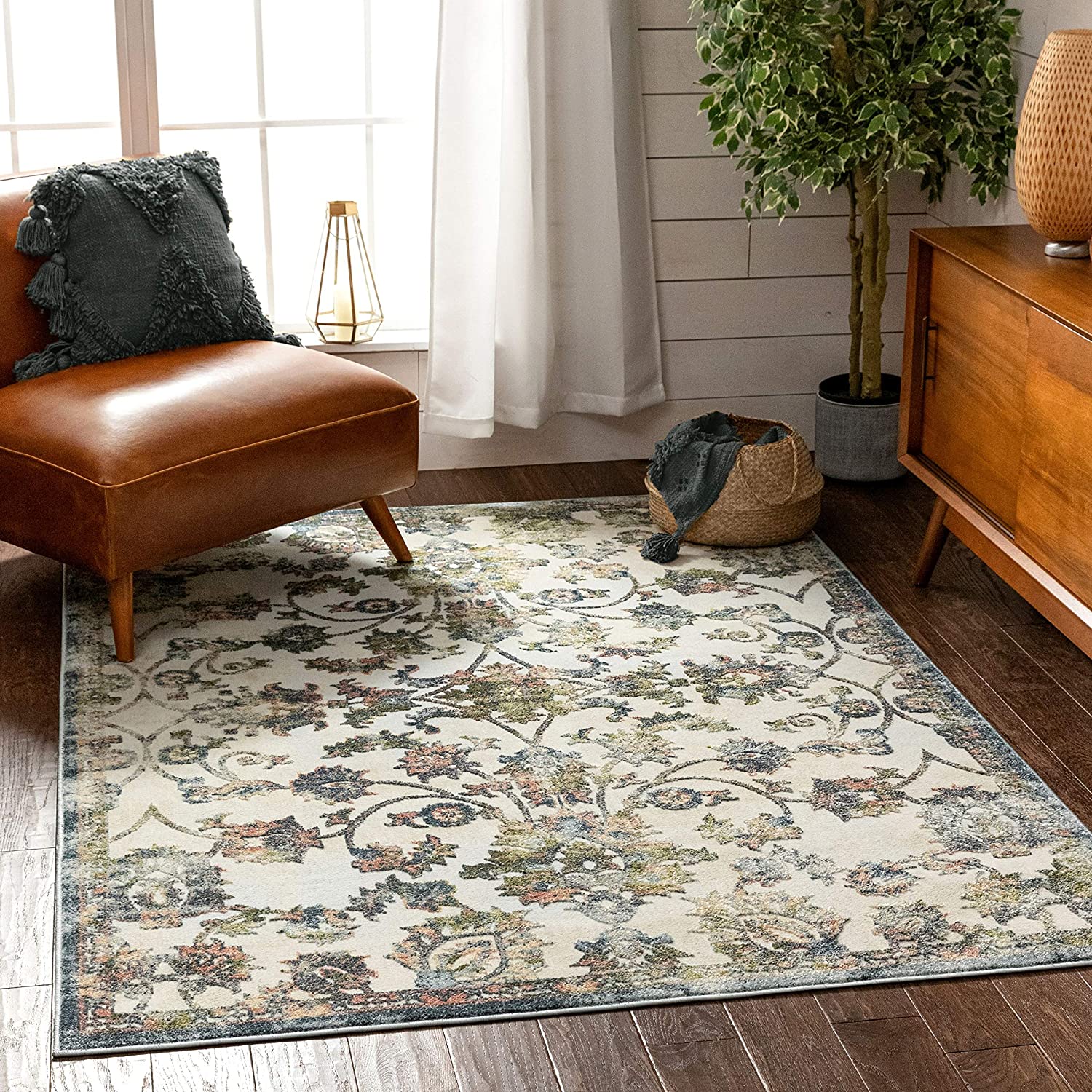 Atlas Blue Distressed Floral Oriental Pattern Area Rug