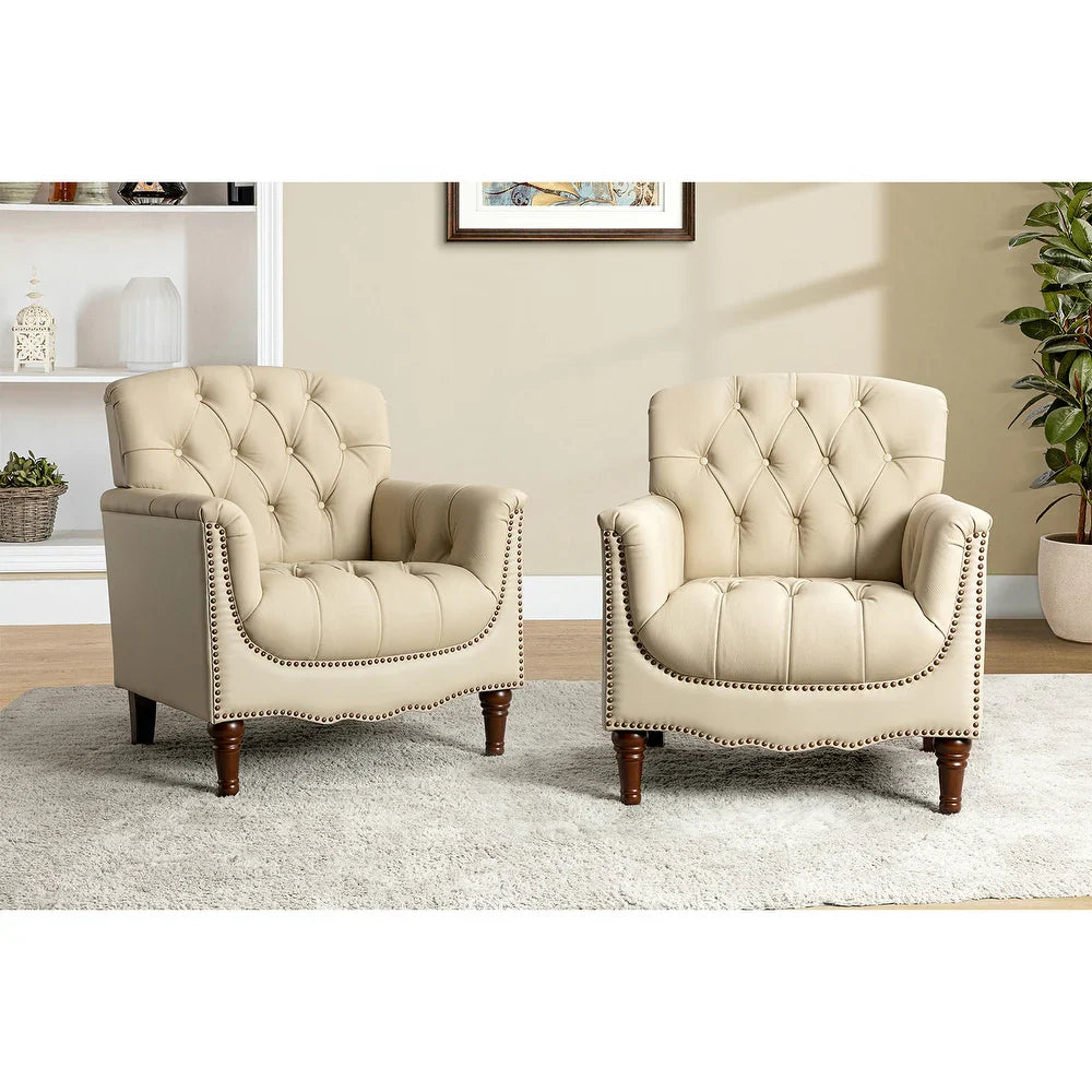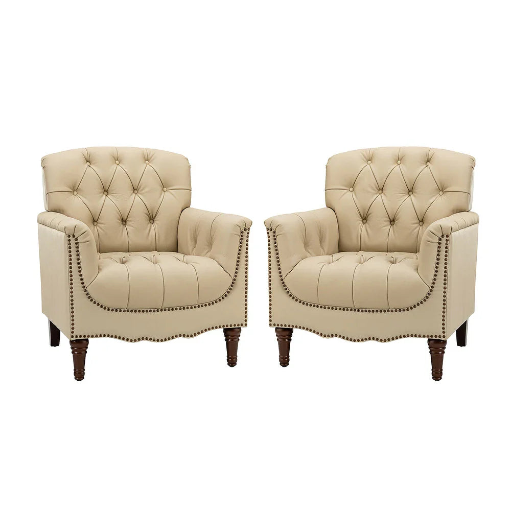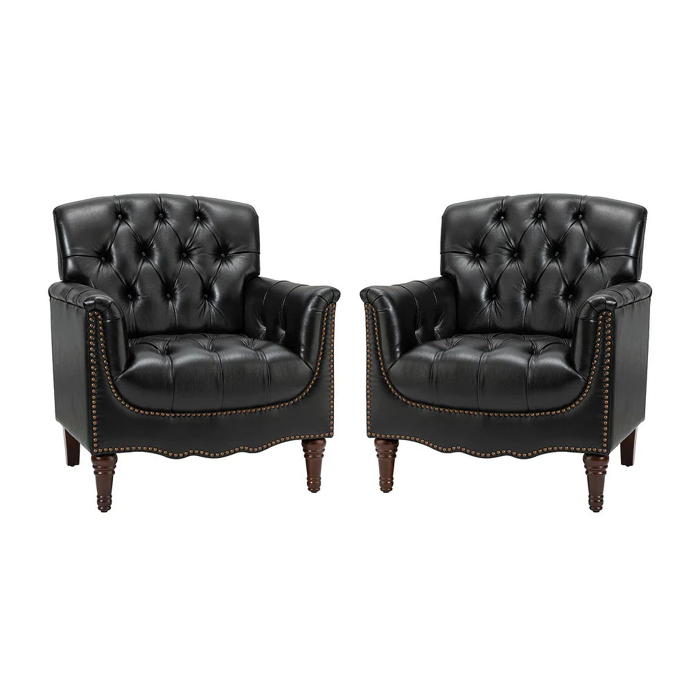 Wemer Transitional Genuine Leather Armchair with Button Tufted Back Set of 2