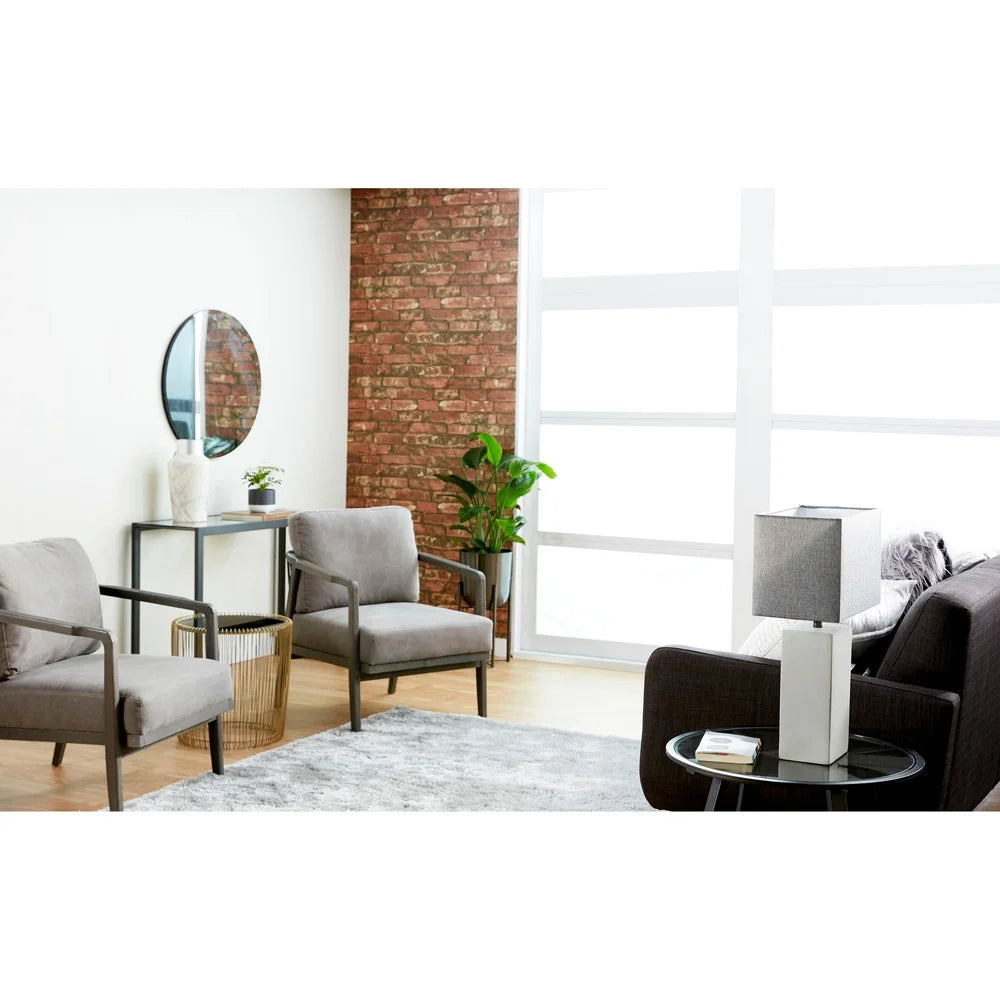 - This table lamp is crafted of solid and lasting cement, linen, and iron