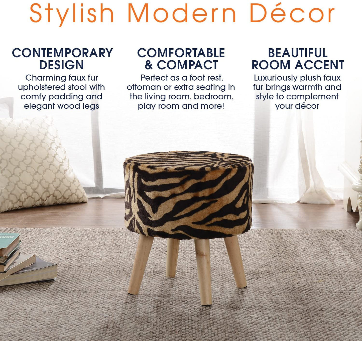 Collection Tiger Stripe Ottoman and Footstool 13" Round Decorative Faux Fur Stool