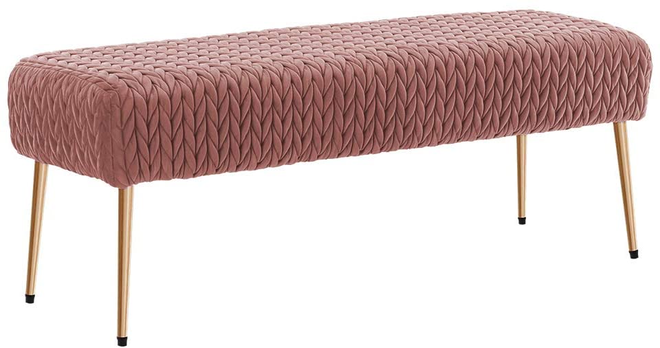Quilt Velvet Bench Ottoman Comfortable Footrest Stool Table Bench Dining Bench Indoor Bench with Gold Metal Base for Entryway Dining Room Living Room Bedroom Atrovirens