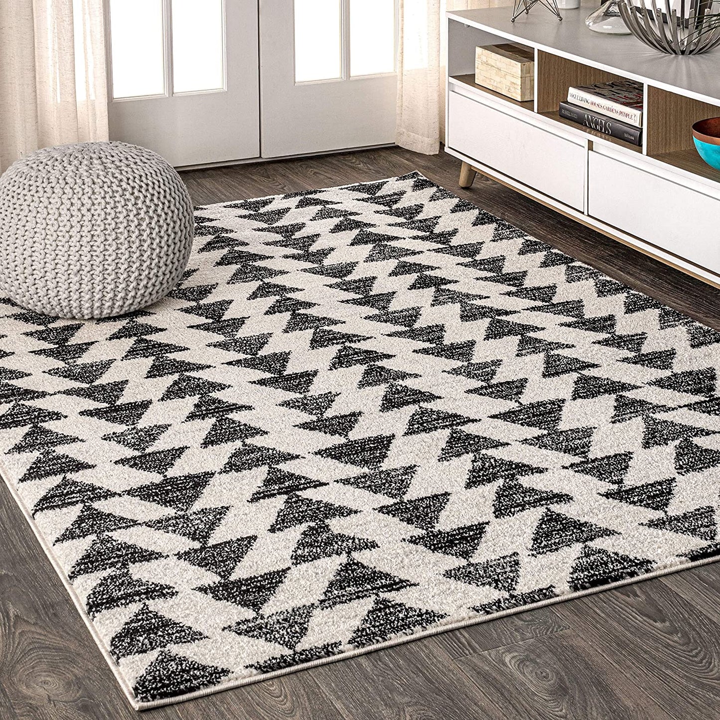 Aisha Moroccan Triangle Geometric Area Rugs Cream,Black